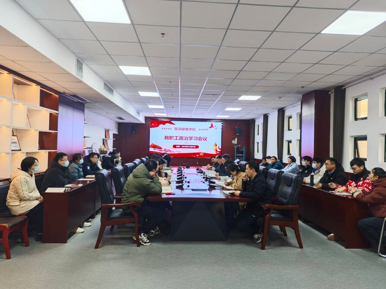 1月7日中午,旅游健康学院党总支在学院会议室召开理论学习中心组学习(扩大)会议暨教职工政治理论学习,会议由党总支书记杨锐主持,全体教职工参加会议。