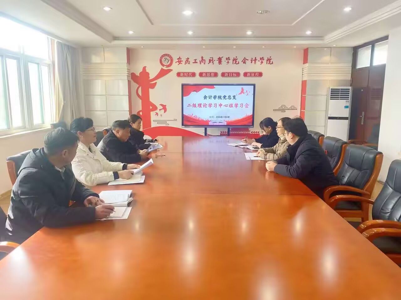 1月8日中午,会计学院党总支在明德楼二楼党建会议室召开二级理论学习中心组学习会议。学院党总支委员参会,会议由党总支书记赵艳主持。