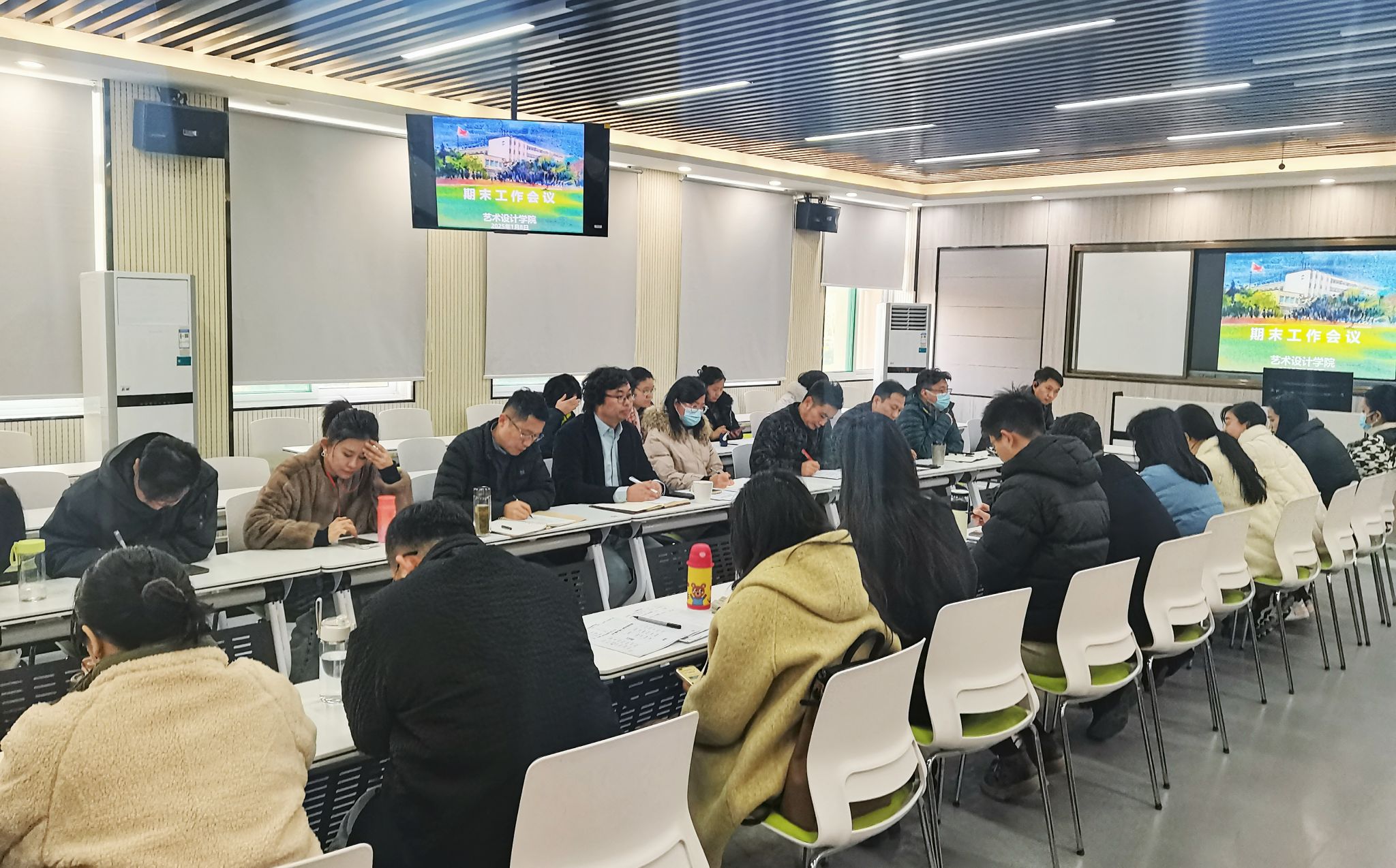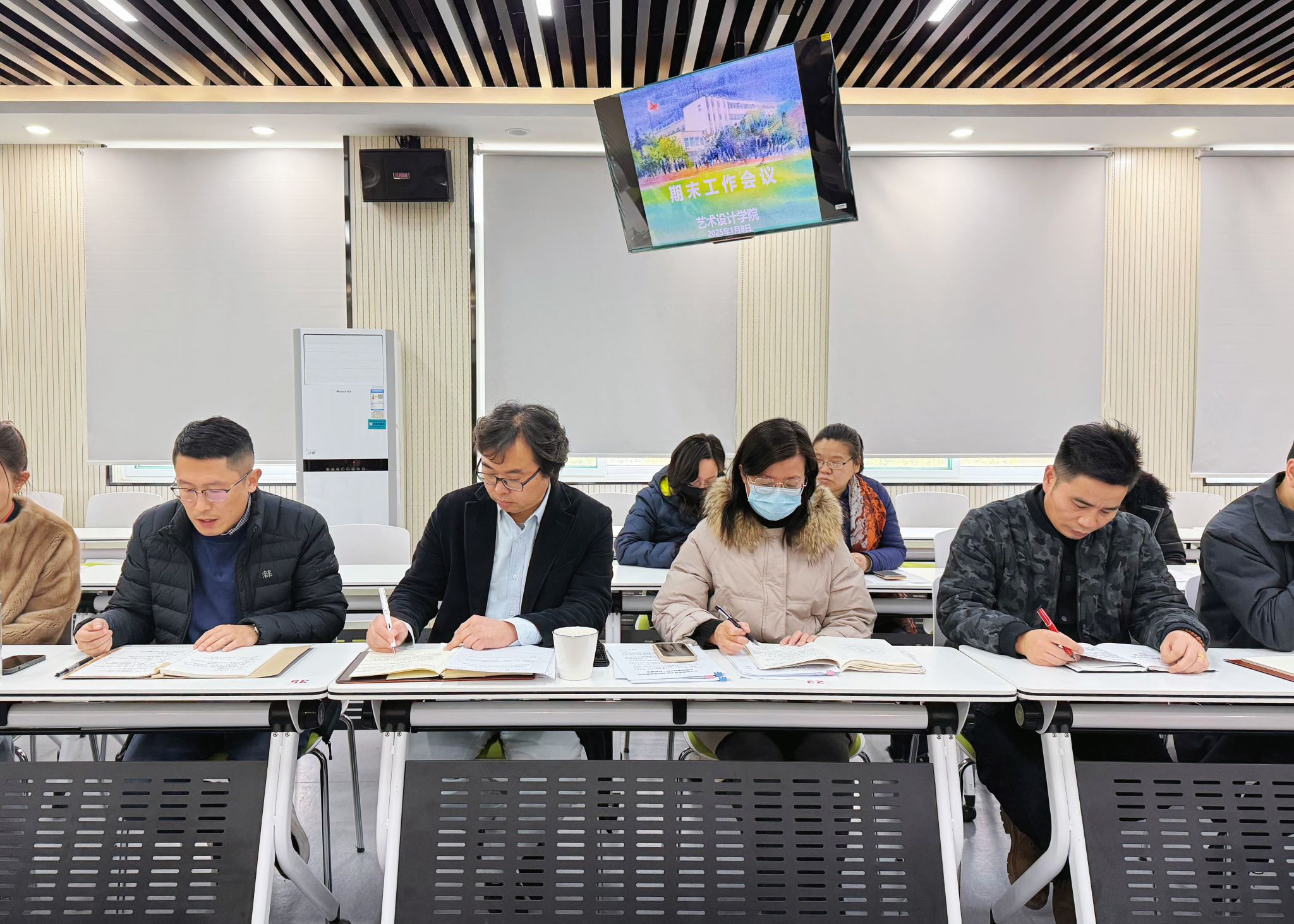 1月8日下午,艺术设计学院在庐阳校区致知楼204智慧教室召开期末工作会议,校党委委员、宣传统战部部长、艺术设计学院党总支书记孔成,艺术设计学院党总支副书记、院长魏芬,党总支副书记张乐、副院长邱志斌及全体教职工参加会议。会议由孔成主持。