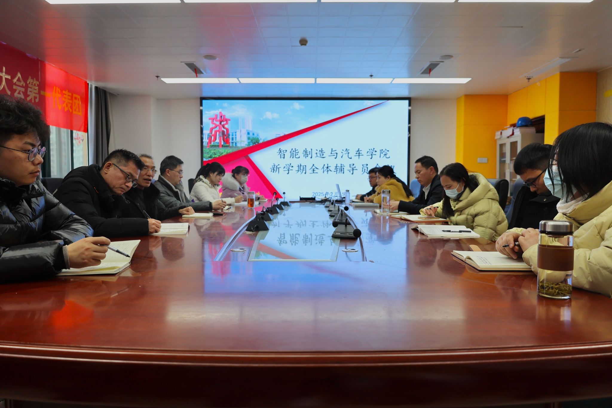 新春伊始,万象更新。为了进一步加强学生管理工作,保障学生的健康成长,2025年2月15日,智能制造与汽车学院在综合楼6号会议室召开新学期辅导员工作会议。学院党总支书记丁浩、党总支副书记盖昊宇、副院长任远林及全体专兼职辅导员参加了会议。