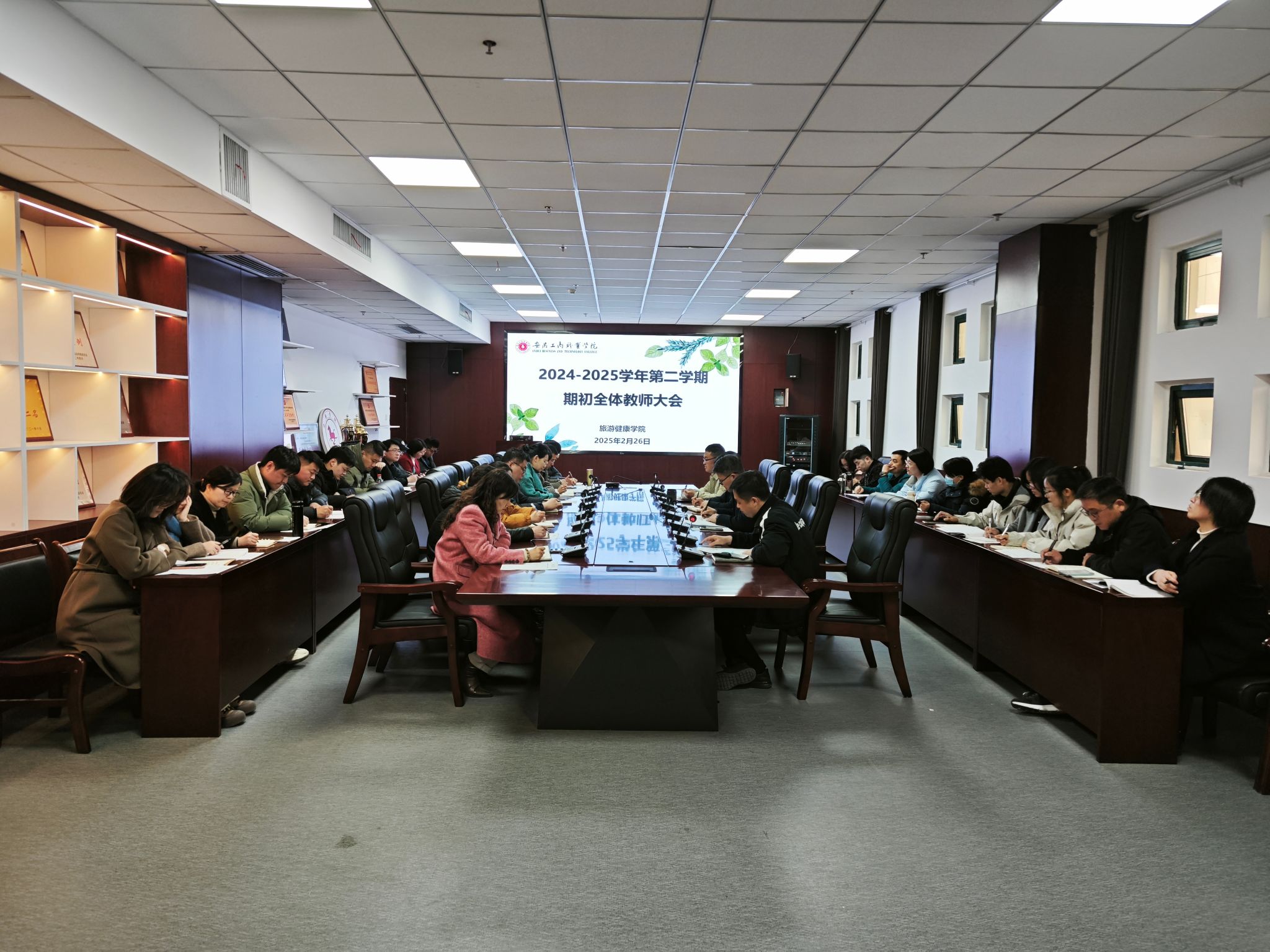 2月26日下午,旅游健康学院在学院会议室召开全体教职工大会,学院全体教职工参加会议,会议由办公室主任孙群主持。