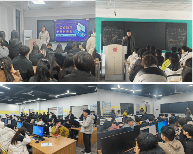 针对不同年级学生作息特点,为避免影响正常教学秩序,大一利用学生晚自习时段、大二及本科班利用中午及傍晚的时间开展集中宣传教育。宣讲过程中,陈夺要求全体学生“放下手机、抬头聆听”,通过真实诈骗案例还原、互动问答等形式,强化学生专注度与参与感。? 宣讲会上,结合学校近期发生的刷单返利、虚假购物、网络交友诈骗等10种典型案例,逐一拆解诈骗分子话术套路与心理操控手段。例如,针对学生群体高发的“游戏账号交易诈骗”,详细揭示“低价充值”“装备代购”等陷阱背后的资金流转漏洞,引导学生识别“馅饼”背后的“陷阱”?。同时,他反复强调“四不原则”:不轻易转账、不泄露个人信息、不点击不明链接、不贪图小利,要求学生将反诈意识融入日常生活。?
