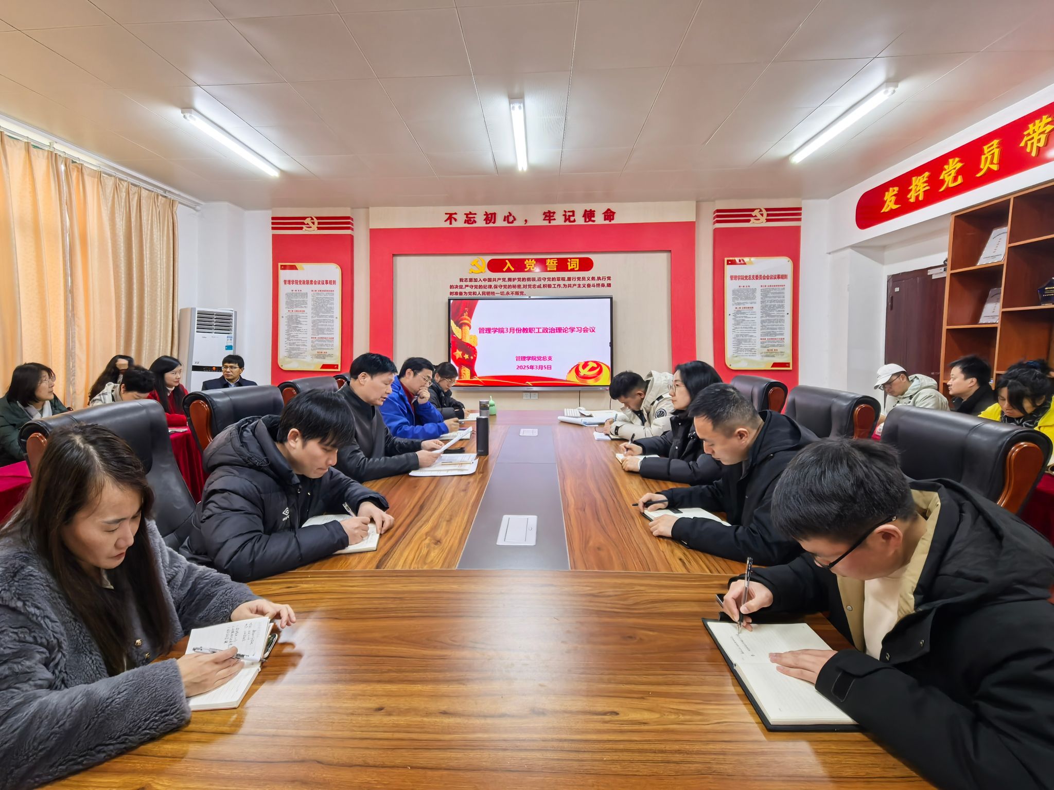 按照学校党委统一部署,3月5日中午,管理学院党总支在学院党员活动室集中开展3月份教职工政治理论学习。学院领导班子成员及全体教职工参会。会议由学院党总支书记曹大友主持。
