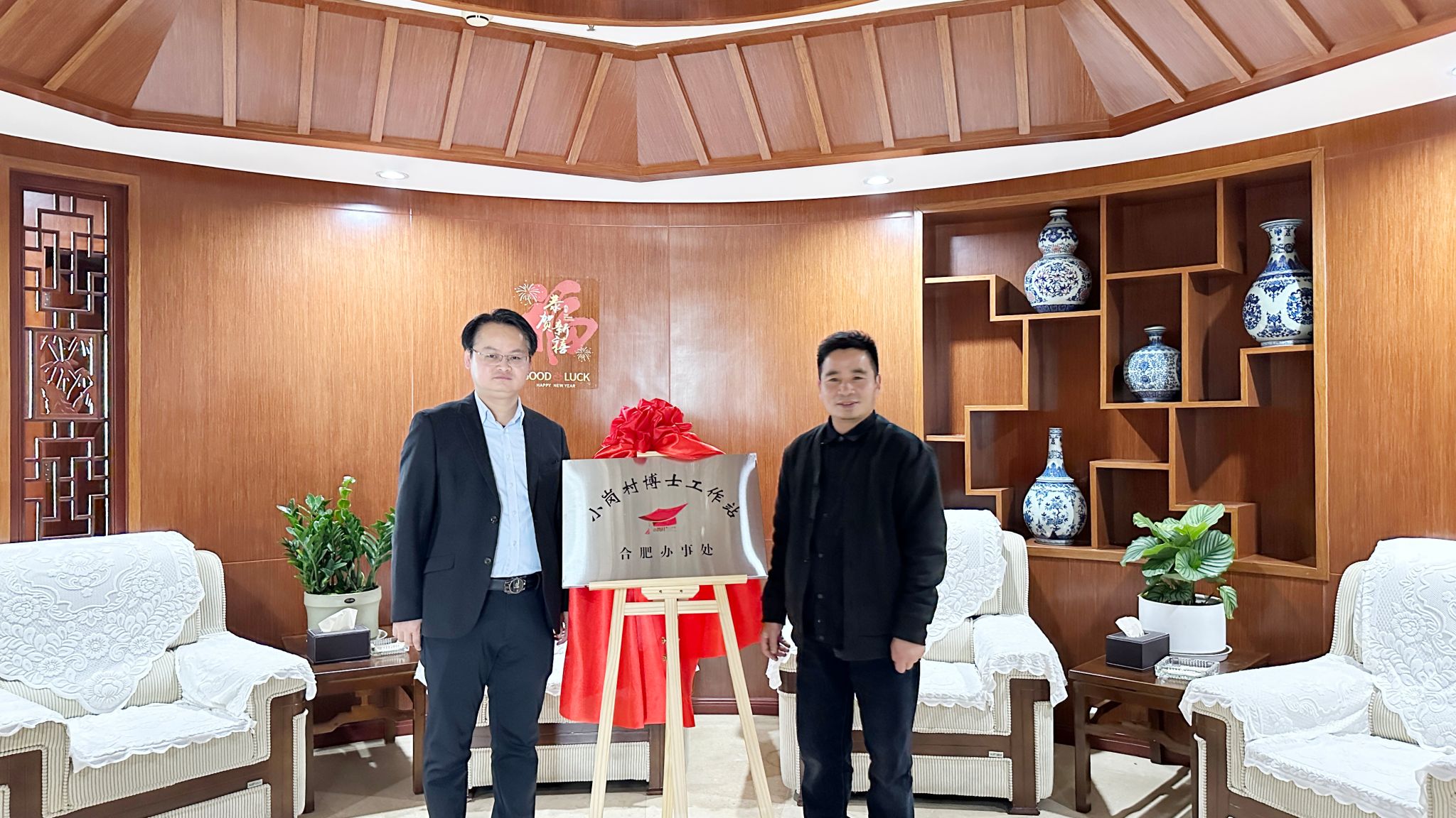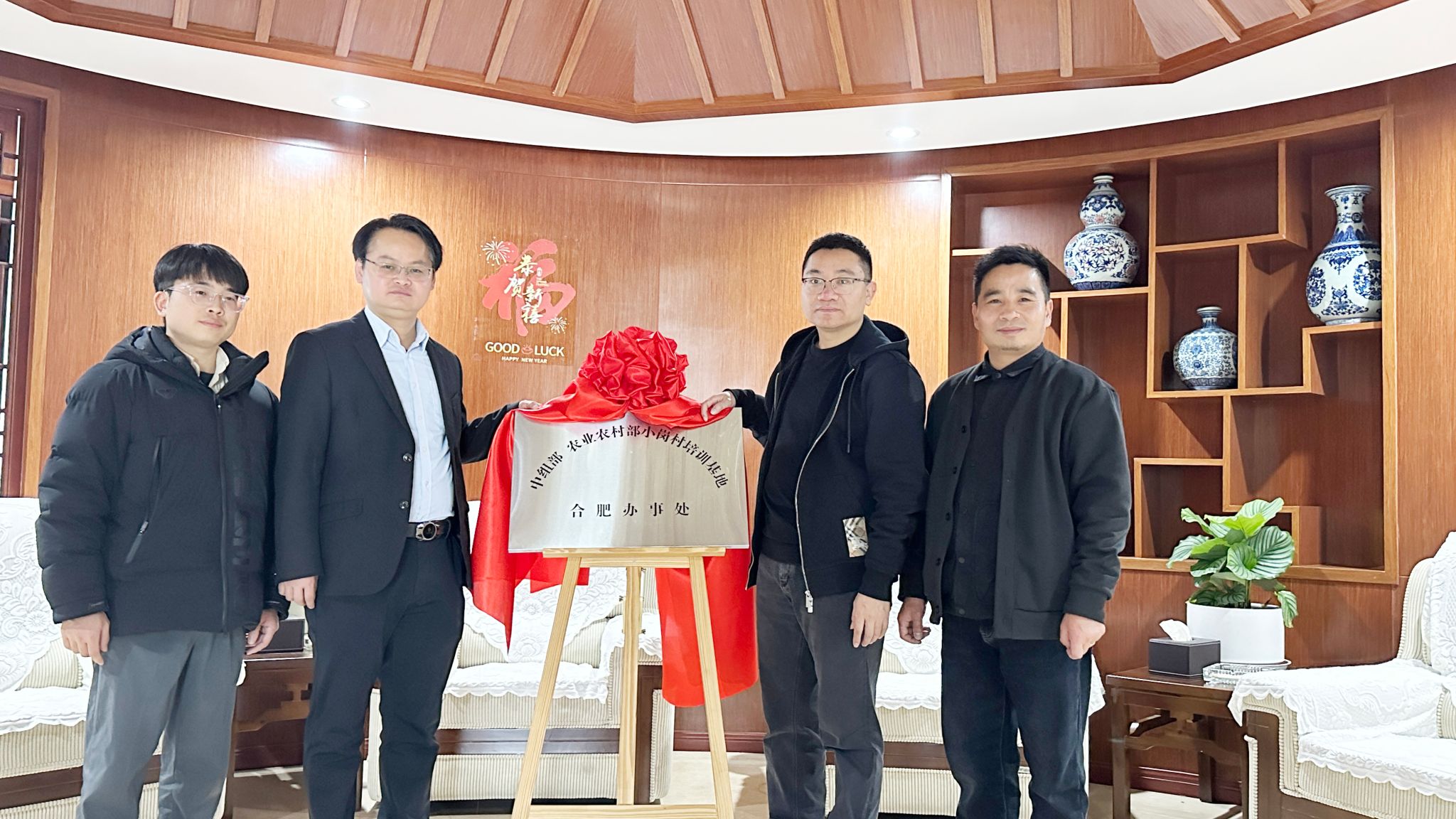 活动核心环节成功举行了“企业+乡村+高校”平台揭牌仪式。由小岗村博士工作站创站博士成员邱志斌积极促成的“小岗村博士工作站”、“中组部、农业农村部小岗村培训基地”合肥办事处顺利揭牌。这一产教融合新载体将发挥“三螺旋”协同效应:依托企业产业资源赋能乡村振兴项目孵化,借力小岗村改革基因创新实践教学模式,整合艺术设计学院设计力量构建“政产学研用”创新生态圈。未来将重点推进“乡村融合产业振兴计划”,发挥师生团队合力在地化设计实践,实现“真题真做、实岗实战”的教学改革突破。