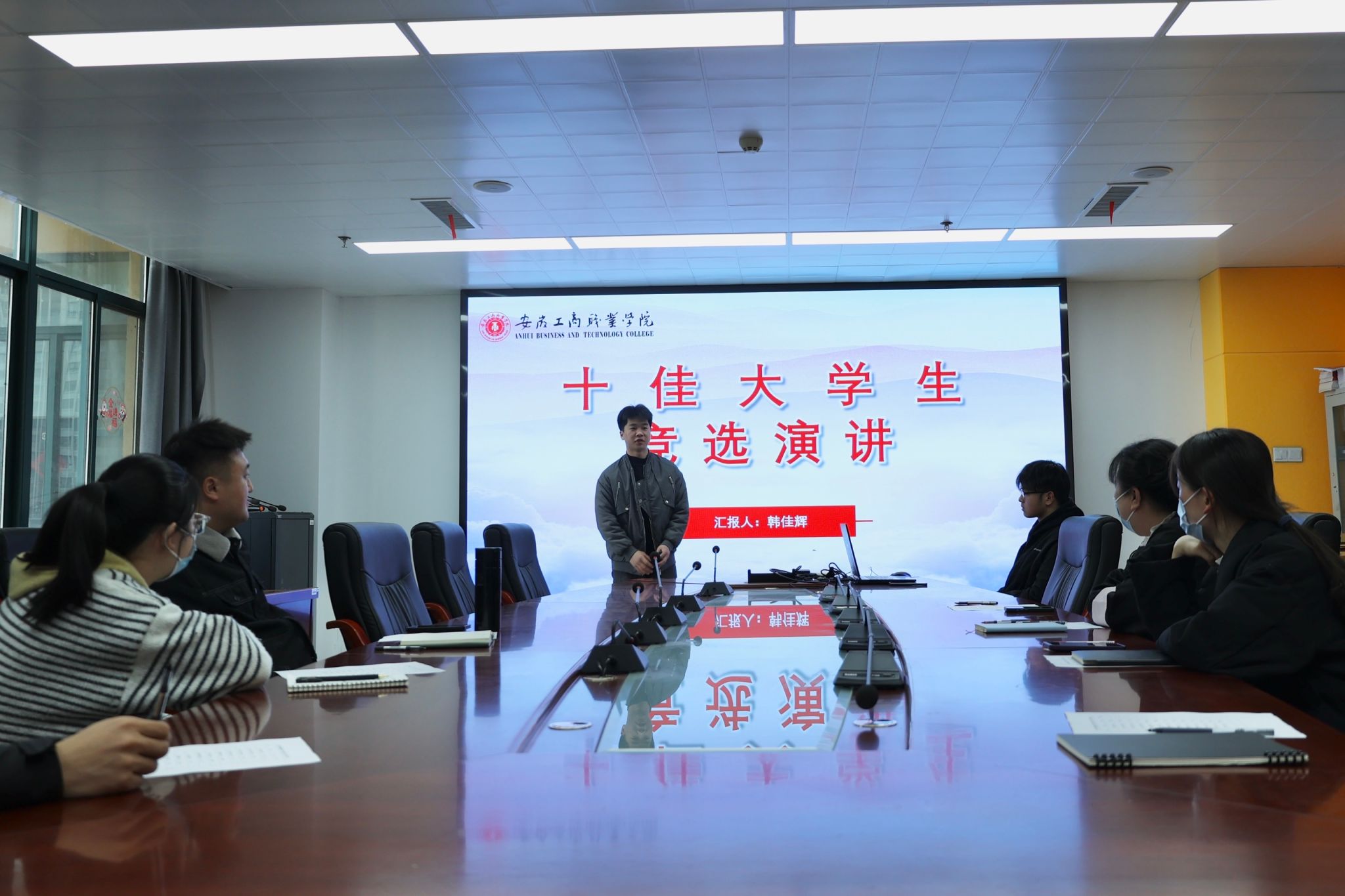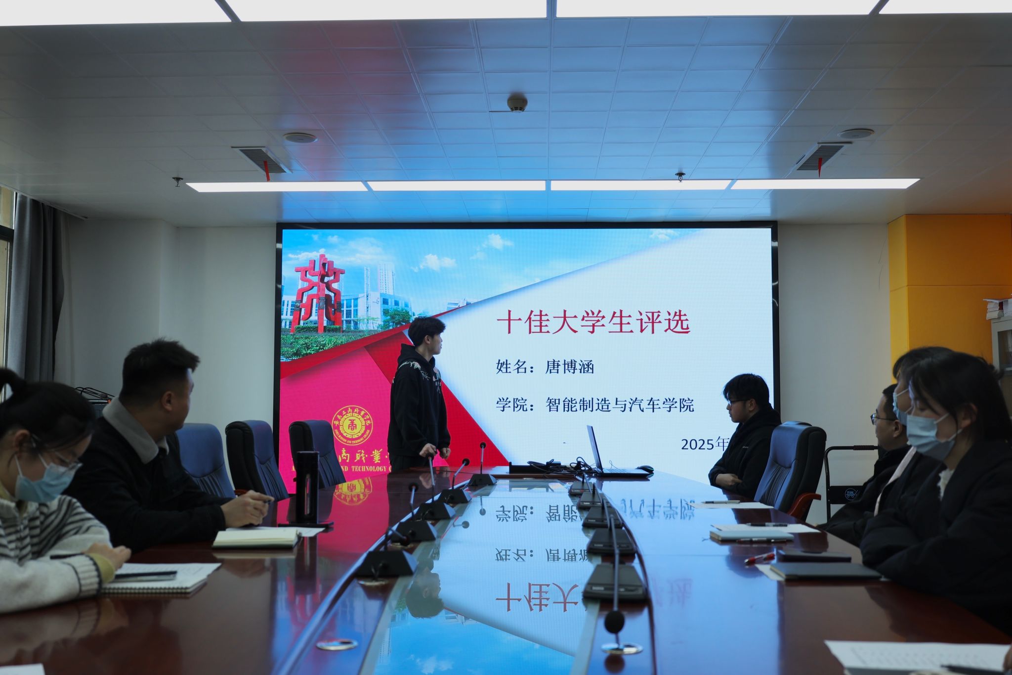 为树立大学生先进典型,发挥示范引领作用,激发青年学生争先创优意识,3月28日上午,智能制造与汽车学院在综合楼6号会议室开展了2024年度“十佳大学生”评选活动。本次活动由学院杨东、刘婷婷、方玉莲、陈志毅、孙卫昊、马震、王诺亚7位老师出席并组成评审团。