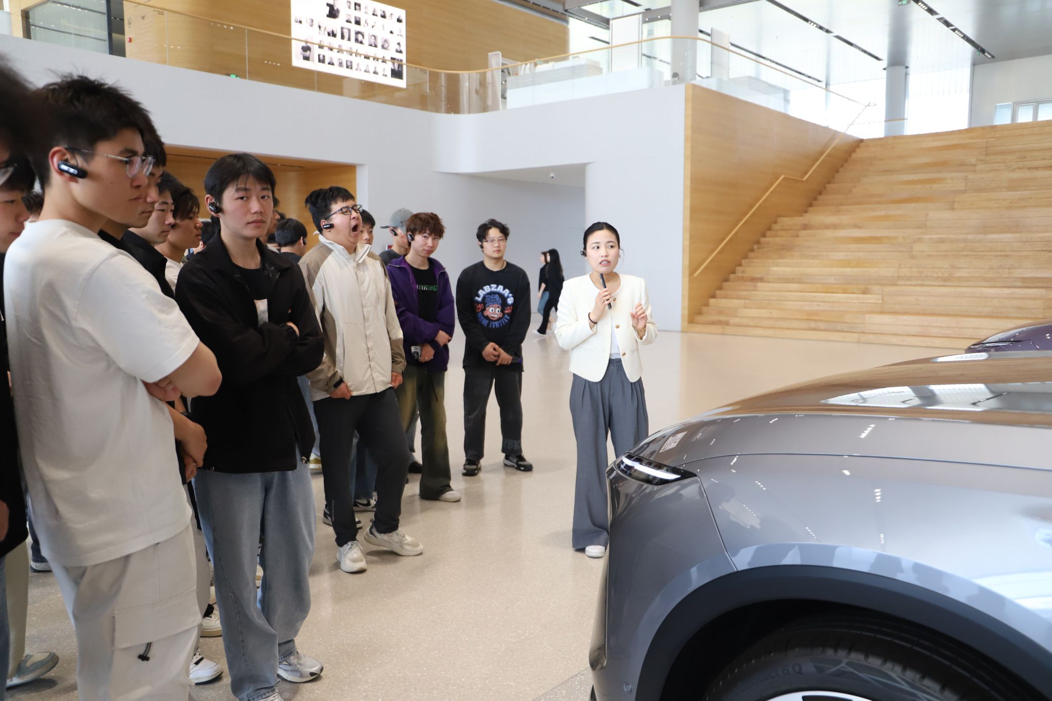 在马震老师的带领下,同学们有序参观了蔚来汽车体验中心展示区。在这里,从时尚动感的量产车型到代表未来科技趋势的概念车,每一款车都吸引着同学们驻足观看、仔细研究,大家近距离感受了蔚来汽车在设计美学、智能科技、舒适体验等方面的独特魅力,对新能源汽车的先进技术和制造工艺有了更直观的认识。
