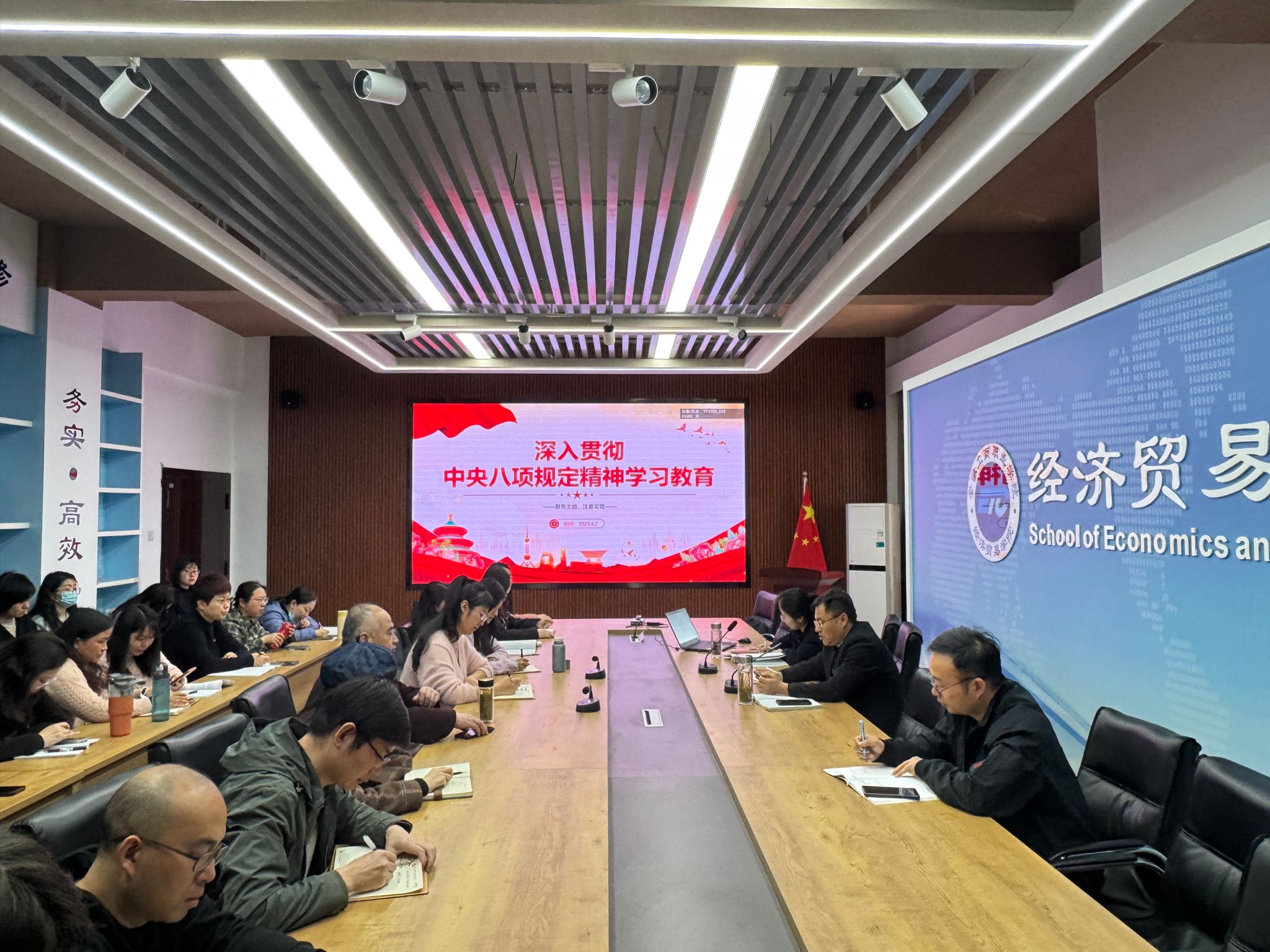 4月2日下午,经济贸易学院在五楼会议室召开深入贯彻中央八项规定精神学习教育动员部署会,学习贯彻习近平总书记世界第一大赌场,澳门金沙城中心深入贯彻中央八项规定精神学习教育的重要讲话和重要指示精神,传达学习《中共中央办公厅世界第一大赌场,澳门金沙城中心在全党开展深入贯彻中央八项规定精神学习教育的通知》精神以及校党委世界第一大赌场,澳门金沙城中心深入贯彻中央八项规定精神学习教育的部署要求。会议由学院党总支书记边昊主持,全体教职工参加会议。