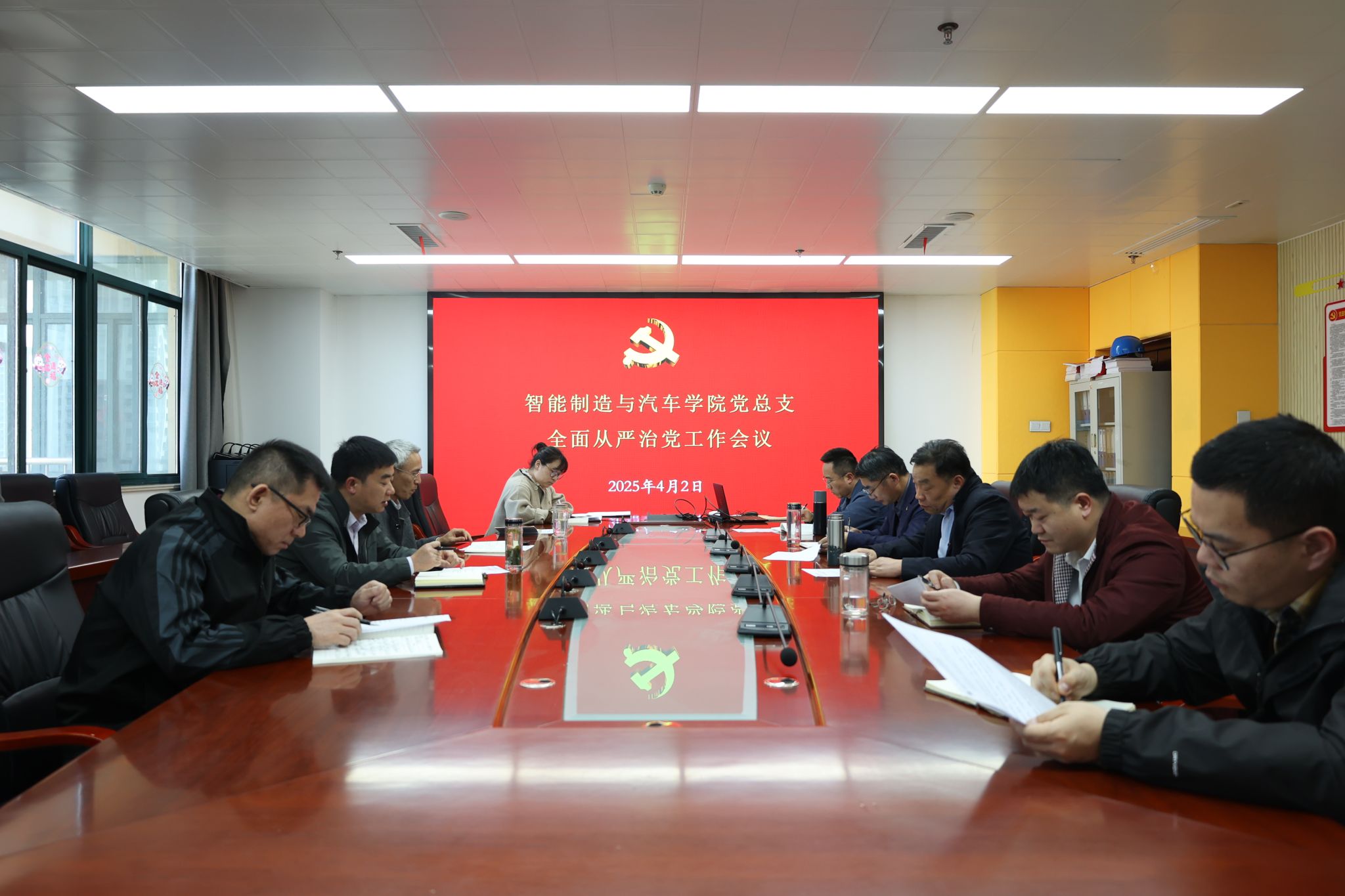 为压实全面从严治党主体责任,营造风清气正的政治生态和育人环境, 4月2日下午,智能制造与汽车学院党总支在第六会议室召开2025年全面从严治党工作会议,对学院深入贯彻中央八项规定精神学习教育进行动员部署。学院党政领导班子成员、党总支委员、教研室主任、全体党支部书记参加会议。
