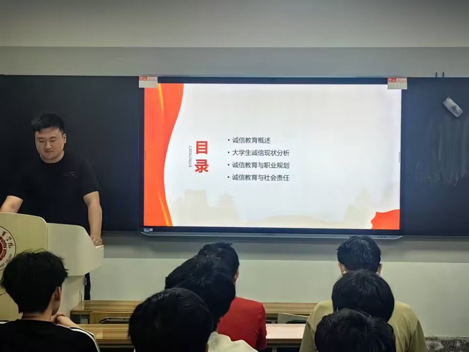 活动伊始,各班辅导员通过精心制作的 PPT,深入浅出地为同学们讲解诚信的内涵、重要性以及在生活和学习中的具体体现。从古代曾子杀猪教子的诚信典故,到现代社会因诚信缺失引发的反面案例,辅导员生动地讲述让同学们深刻认识到诚信是立身之本、处世之道。在讲解过程中,辅导员还结合了专业领域的实际情况,举例说明在未来的工作中,如汽车制造的生产环节,任何一个数据的弄虚作假都可能导致严重的安全隐患;在智能产品研发时,诚信对待每一个实验结果,才是推动行业进步的基石,让同学们真切感受到诚信在未来职业发展中的关键作用。