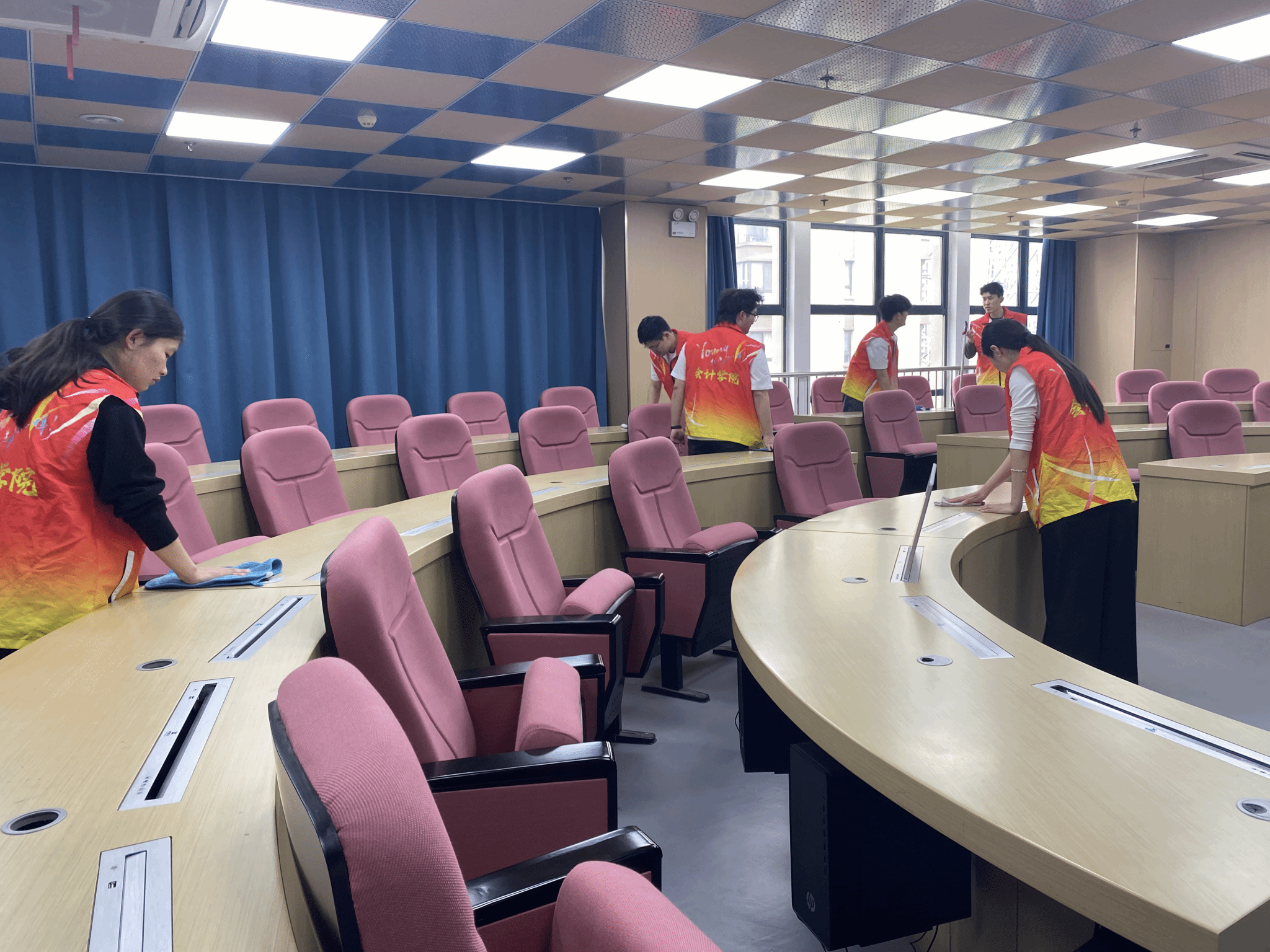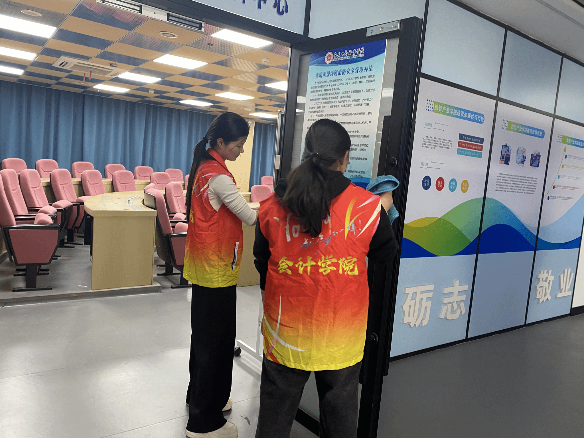 4月9日下午,会计学院学生党支部组织学生党员在会计学院综合楼四楼实训室开展了卫生大清洁的志愿服务活动。
