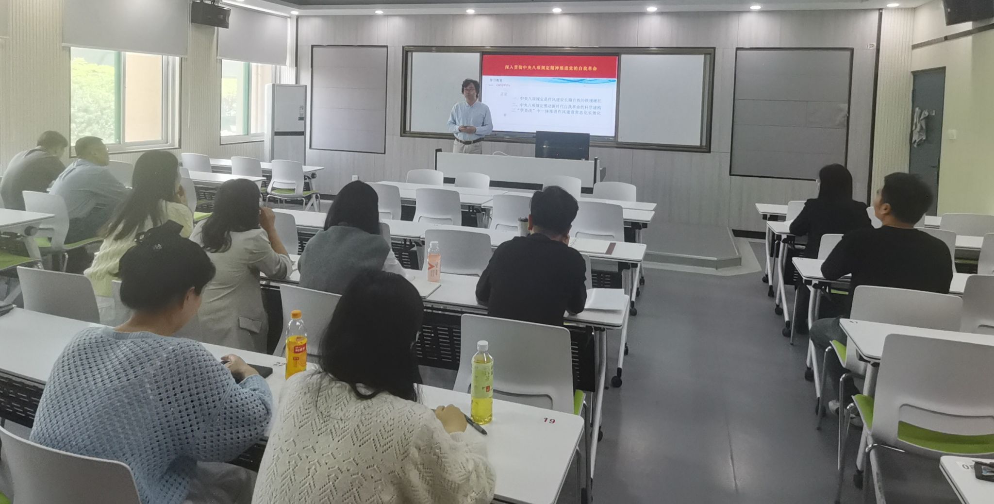 4月16日中午,艺术设计学院党总支在致知楼204智慧教室举办深入贯彻中央八项规定精神学习教育主题党课。党委委员、党委宣传统战部部长、艺术设计学院党总支书记孔成作《深入贯彻中央八项规定精神学习教育 推进党的自我革命》的主题党课, 艺术设计学院党总支副书记、院长魏芬,副书记张乐,副院长邱志斌及全体党员参加学习。