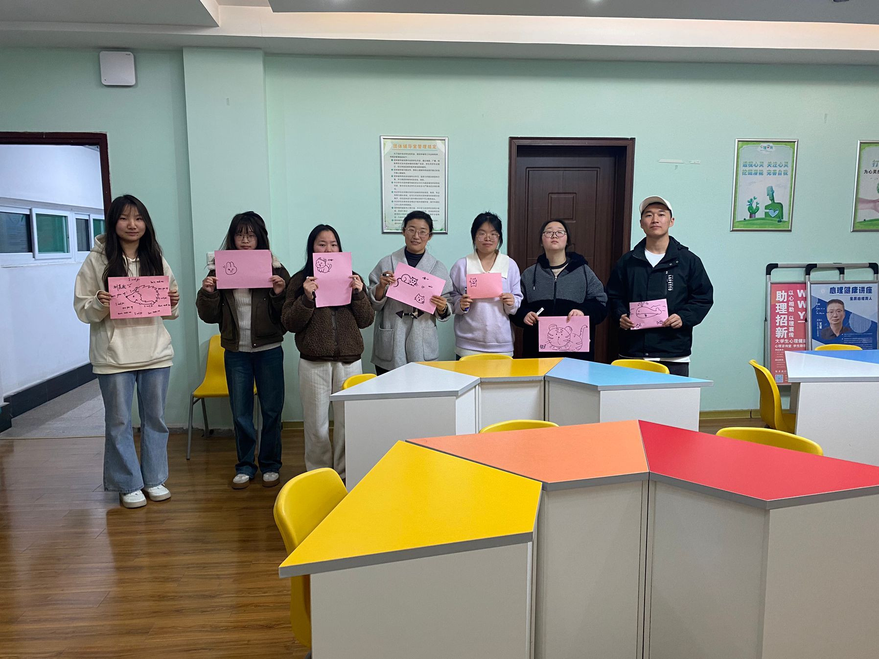 关注心理健康,构建和谐氛围。针对学生常见心理问题,开展“人际关系指导”座谈,通过案例剖析、小组讨论等方式,传授沟通技巧与冲突解决策略,助力构建和谐人际关系。“心灵SPA:大学生心理赋能活动”以轻松有趣的形式,如心理游戏、绘图释压等,帮助学生缓解压力、调节情绪,提升心理健康水平。“开学解困”活动聚焦新学期的适应难题,提供个性化指导与支持,助力新生开启新学期生活。
