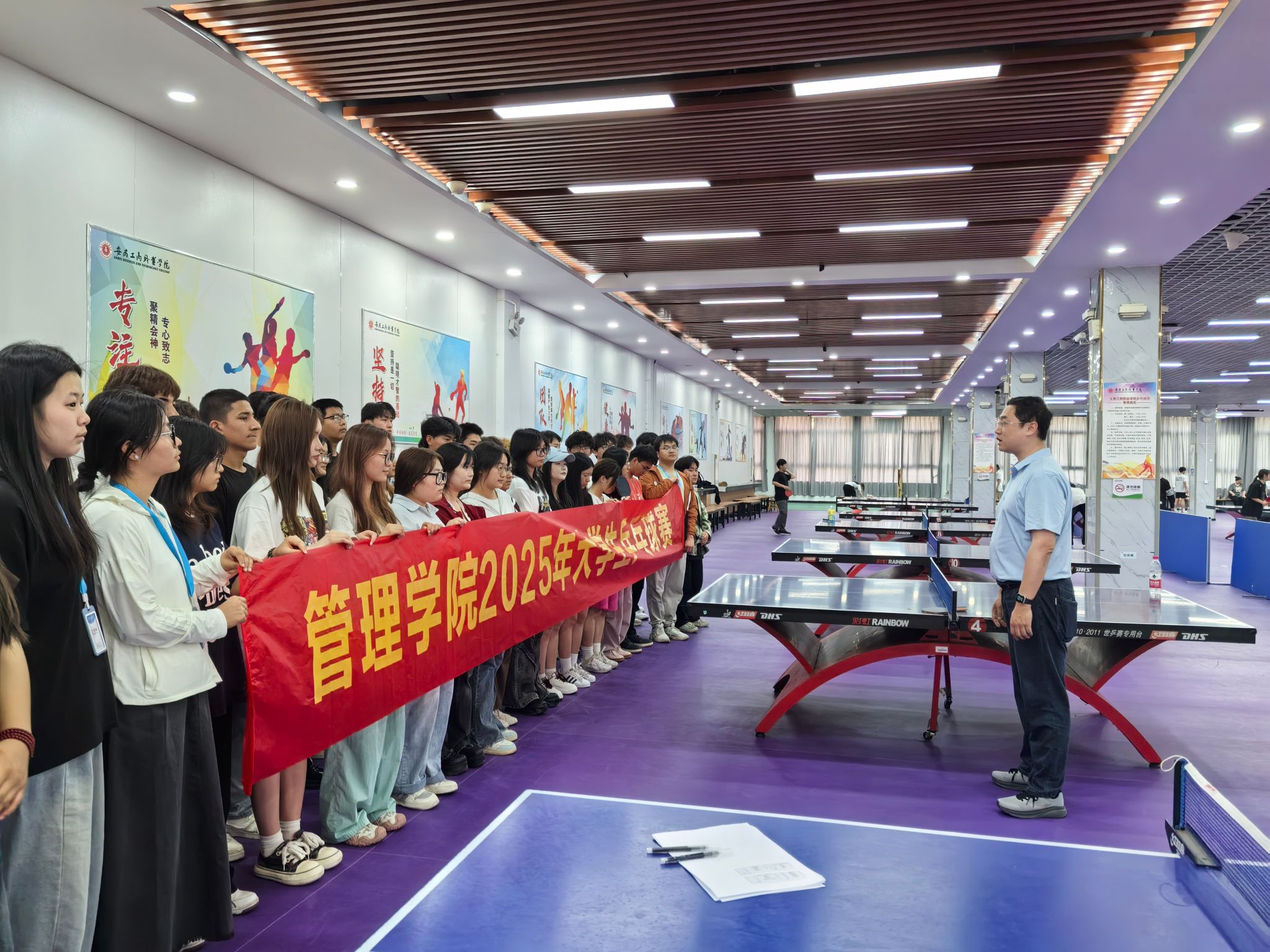 近日,管理学院2025年大学生乒乓球赛在学校乒乓球馆内火热开赛。本次比赛吸引了近70名乒乓球运动爱好者参赛,他们积极备赛,在竞技场上洋溢着青春活力和运动激情。