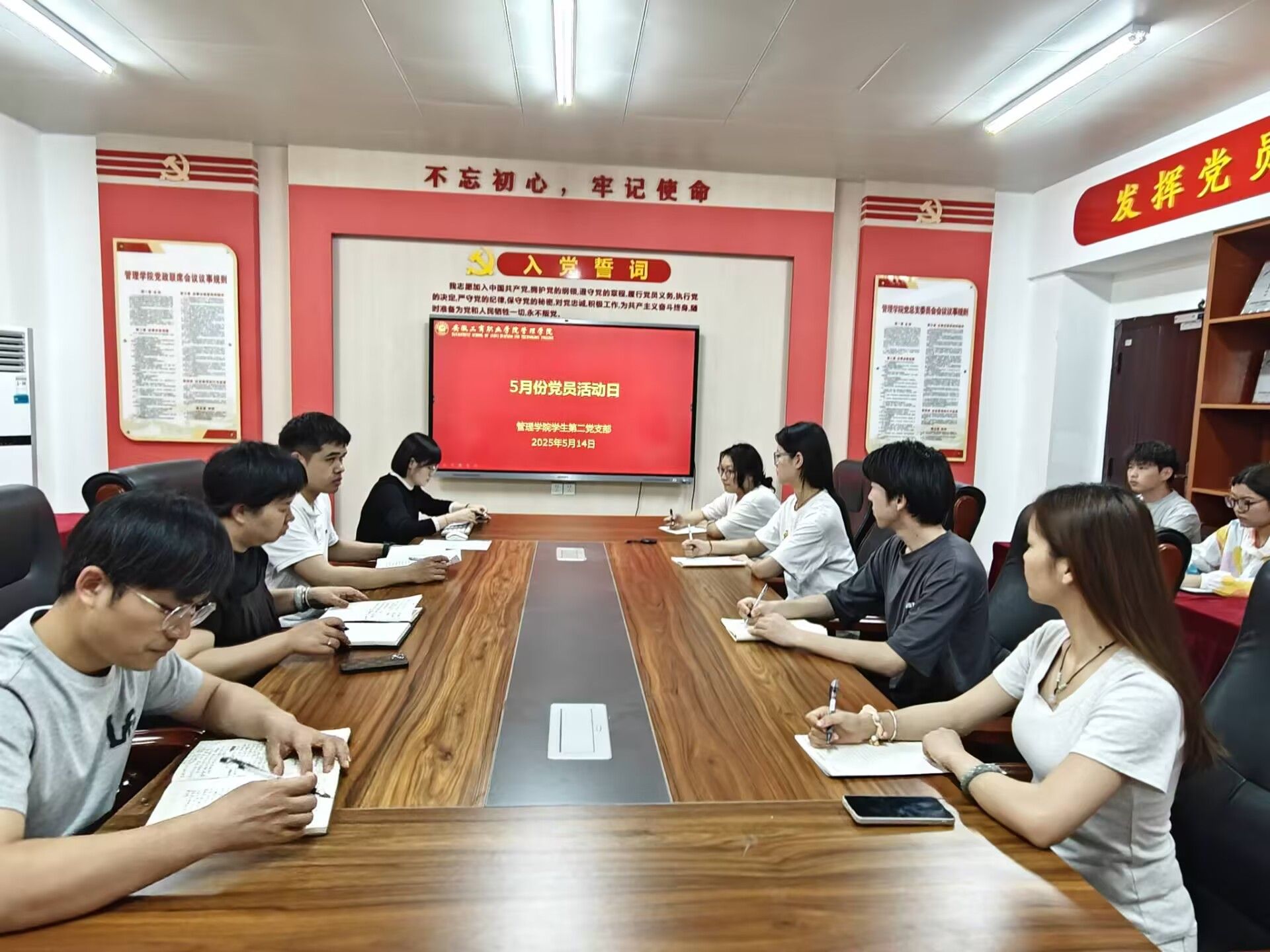 5月14日下午,管理学院学生第二党支部于管理学院108党员活动室开展5月主题党日活动。支部全体师生党员参加,支部书记毕筱菁主持主题党日活动。