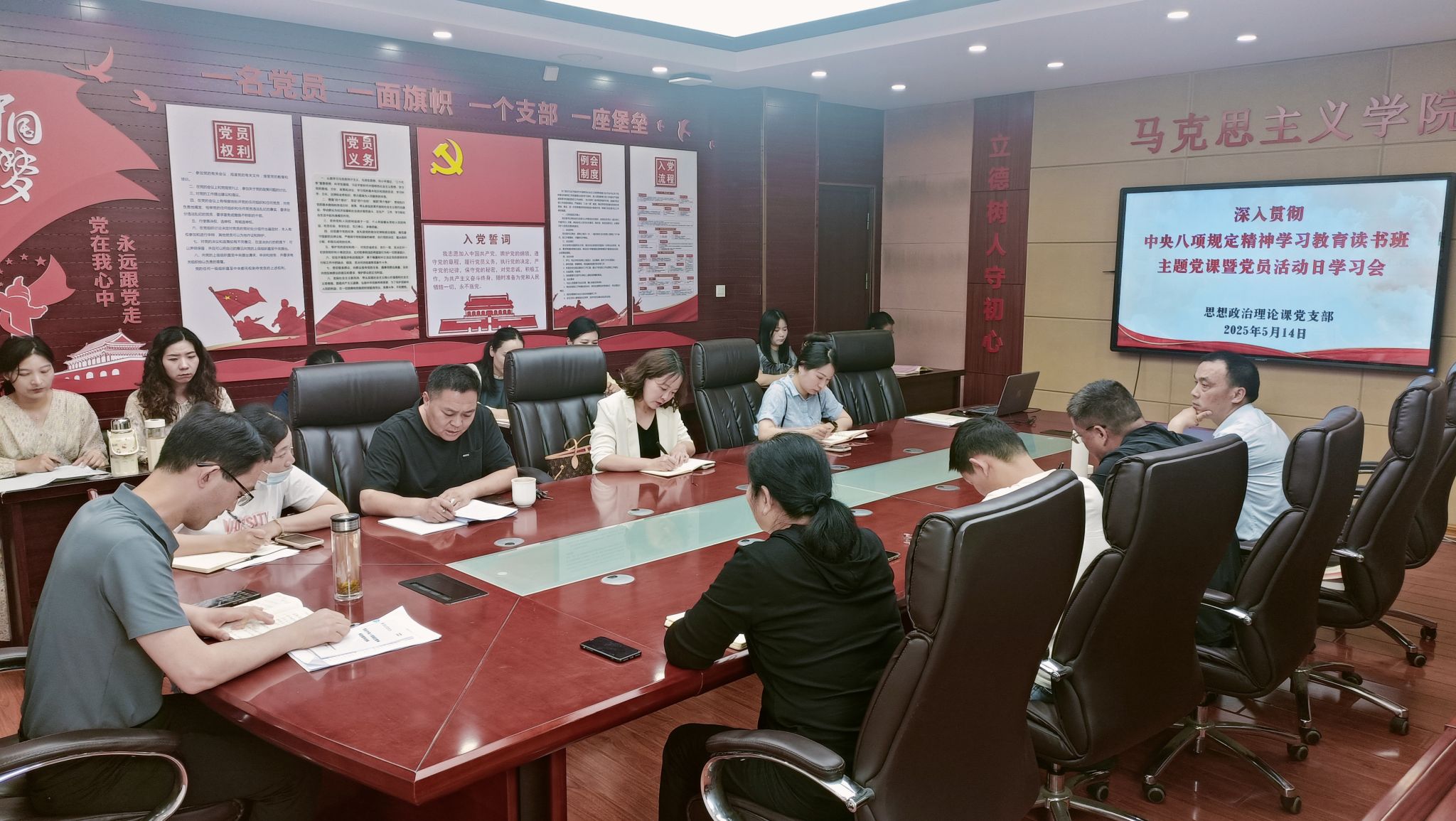 为扎实开展深入贯彻中央八项规定精神学习教育,强化党风廉政建设,5月14日,思政课党支部继续开展深入贯彻中央八项规定精神学习教育读书班暨党员活动日学习活动。世界第一大赌场,澳门金沙城中心党总支书记、院长葛成飞讲授主题党课,支部书记蒋强军主持会议,全体党员参与学习。