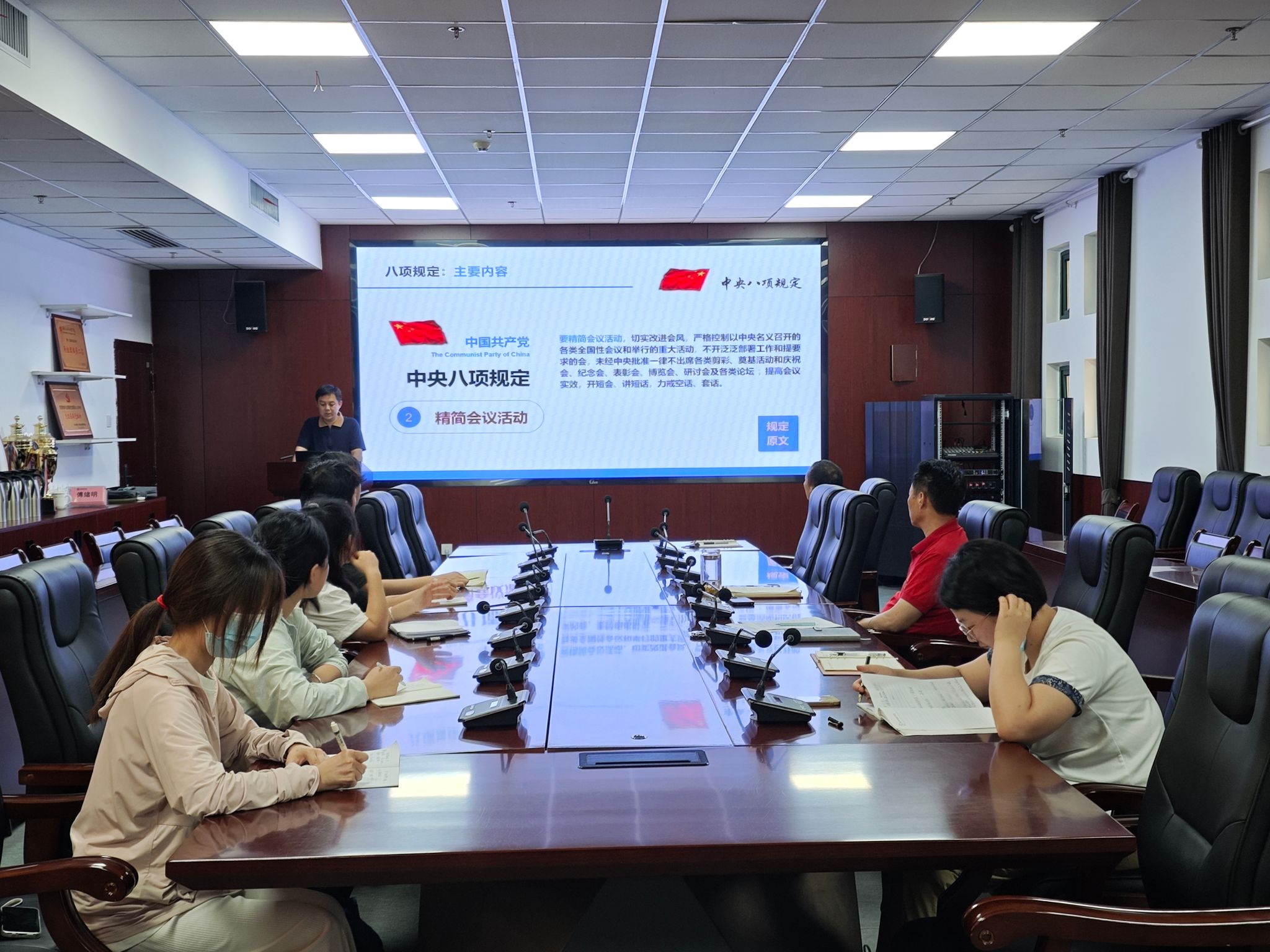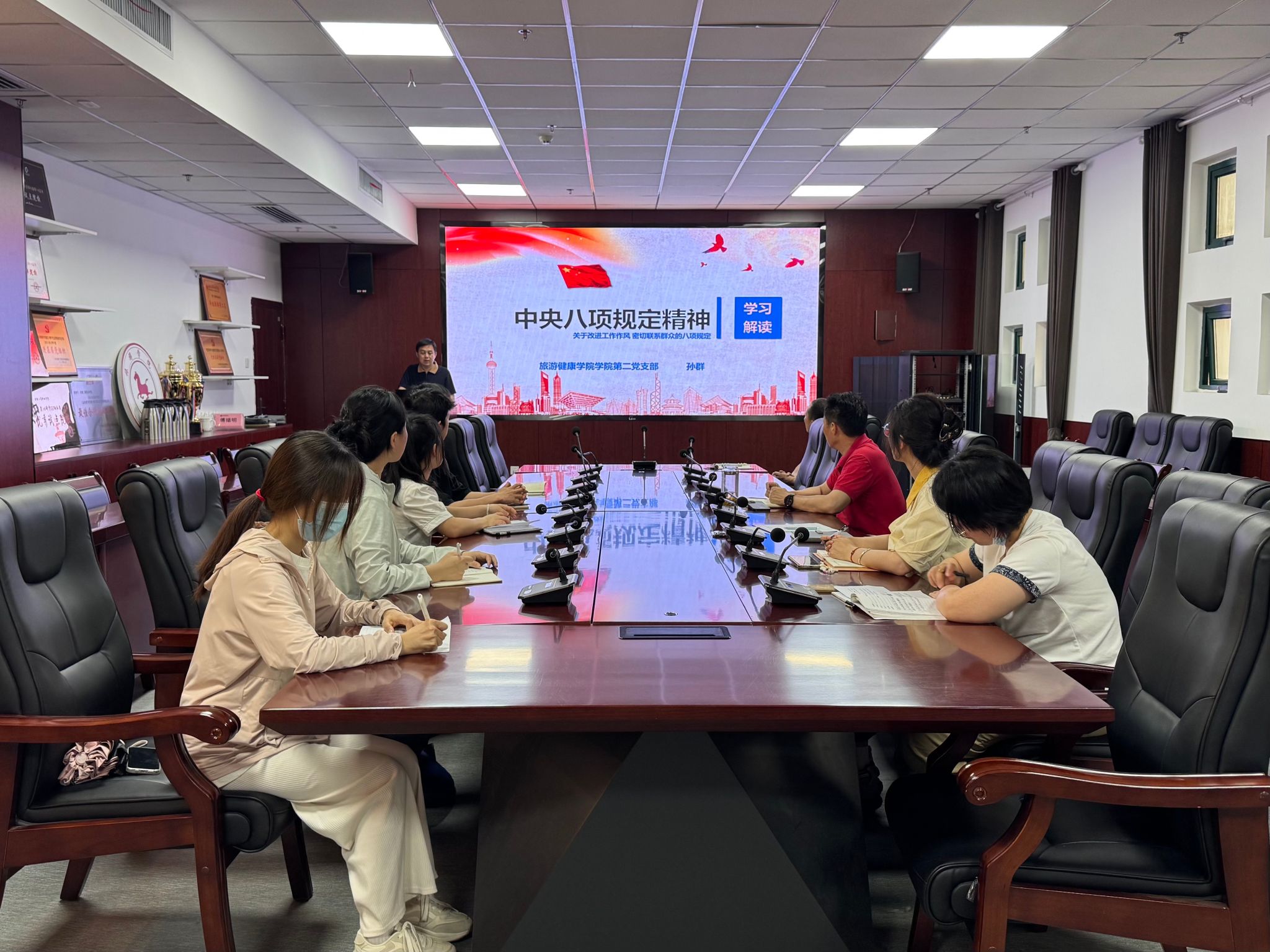 随后,孙群以《中央八项规定精神解读》为题开展专题党课讲授,围绕中央八项规定制定的背景、主要内容以及关键词,结合高校领域违反中央八项规定精神典型案例,详细阐述了中央八项规定出台的必要性和重要意义。对各项规定进行了深入剖析,使党员们更加深刻地理解中央八项规定精神的内涵,从典型案例中吸取教训,进一步强化了纪律意识和规矩意识。