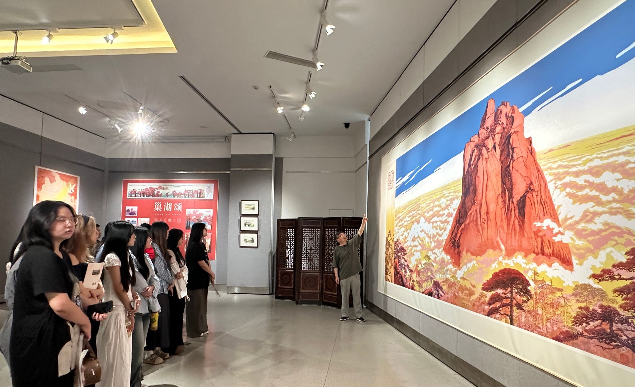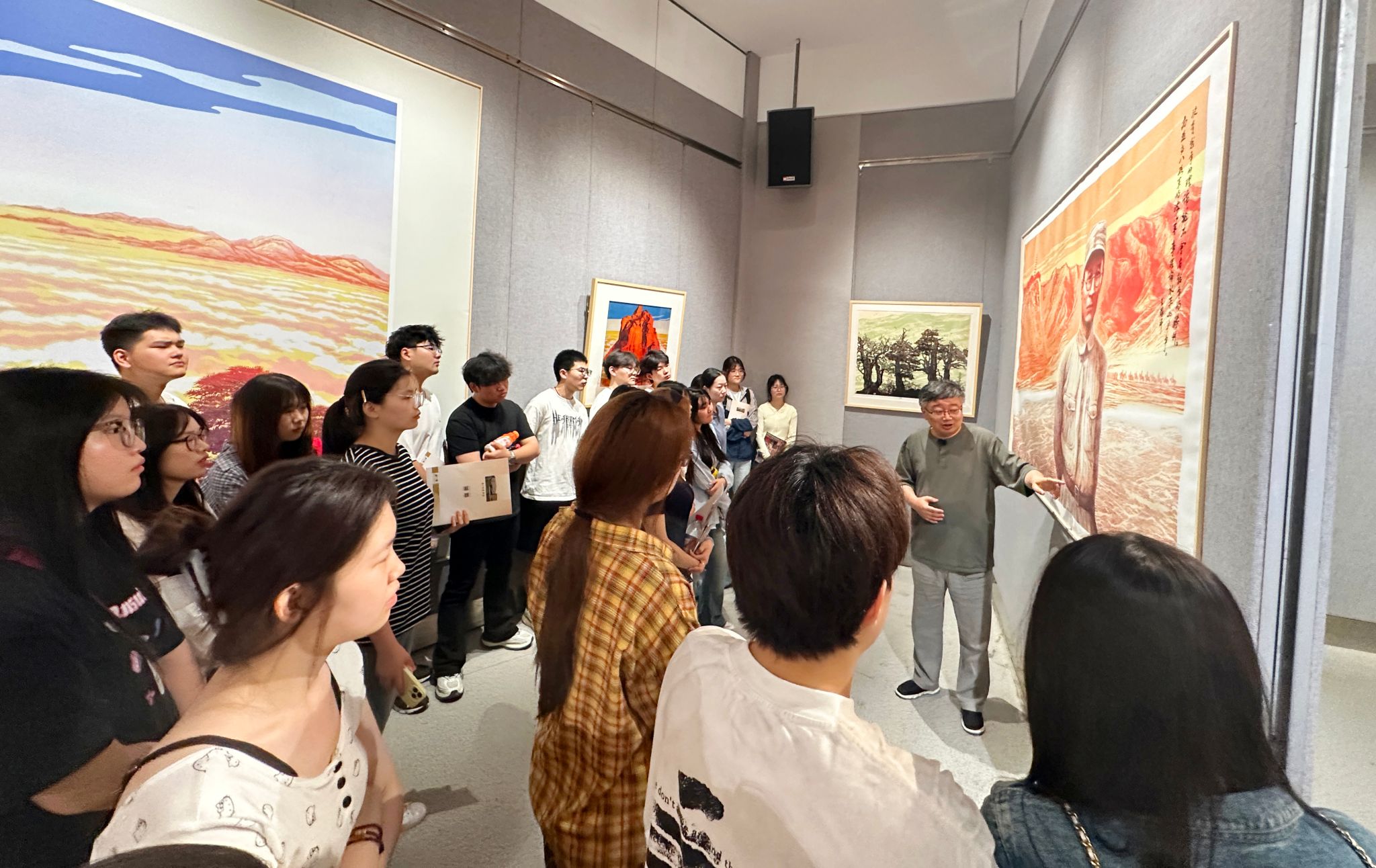 5月22日上午,艺术设计学院广告艺术设计专业50余名师生前往合肥赖少其艺术馆,参观“纪念赖少其先生诞辰110周年——皖韵徽风·师晶艺术展”。此次活动以“美育润心,思政铸魂”为主题,通过实地观展引导学生深入理解徽派艺术的文化内涵与创新精神。著名艺术家师晶亲自为师生从版画、新徽派版画与设计、传承与创新等多角度解读作品,为同学们带来一场生动的艺术与思政教育融合的实践课堂。