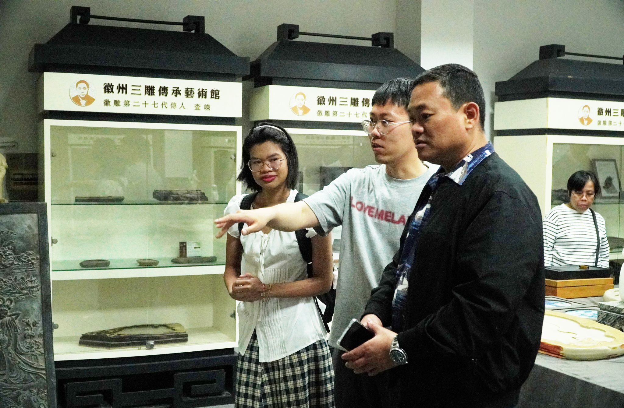 访问期间,艺术设计学院院长魏芬、国际交流与继续教育学院副院长陈清清一行、艺术设计学院教务科长张翌以及相关师生代表热情接待来宾。泰国师生在我院师生的引导下参观了学院的合瓦艺术馆、徽州三雕大师工作室,对我院的艺术作品表现出了浓厚的兴趣和高度的赞赏。