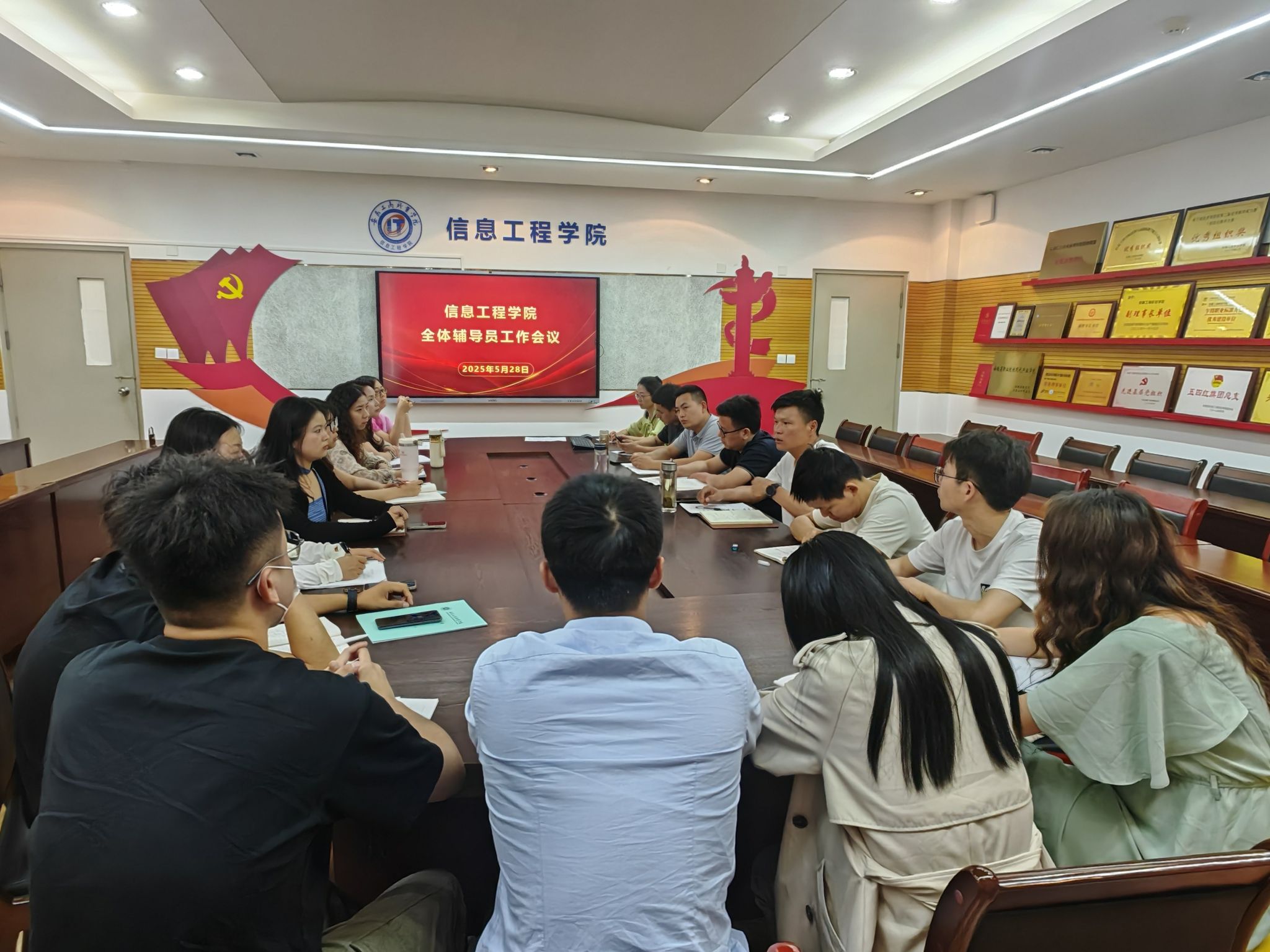 5月28日,信息工程学院召开全体辅导员工作例会,系统梳理近期学生工作,重点部署节前节后安全管理工作。全体辅导员参会,会议由学院党总支副书记陈夺主持。