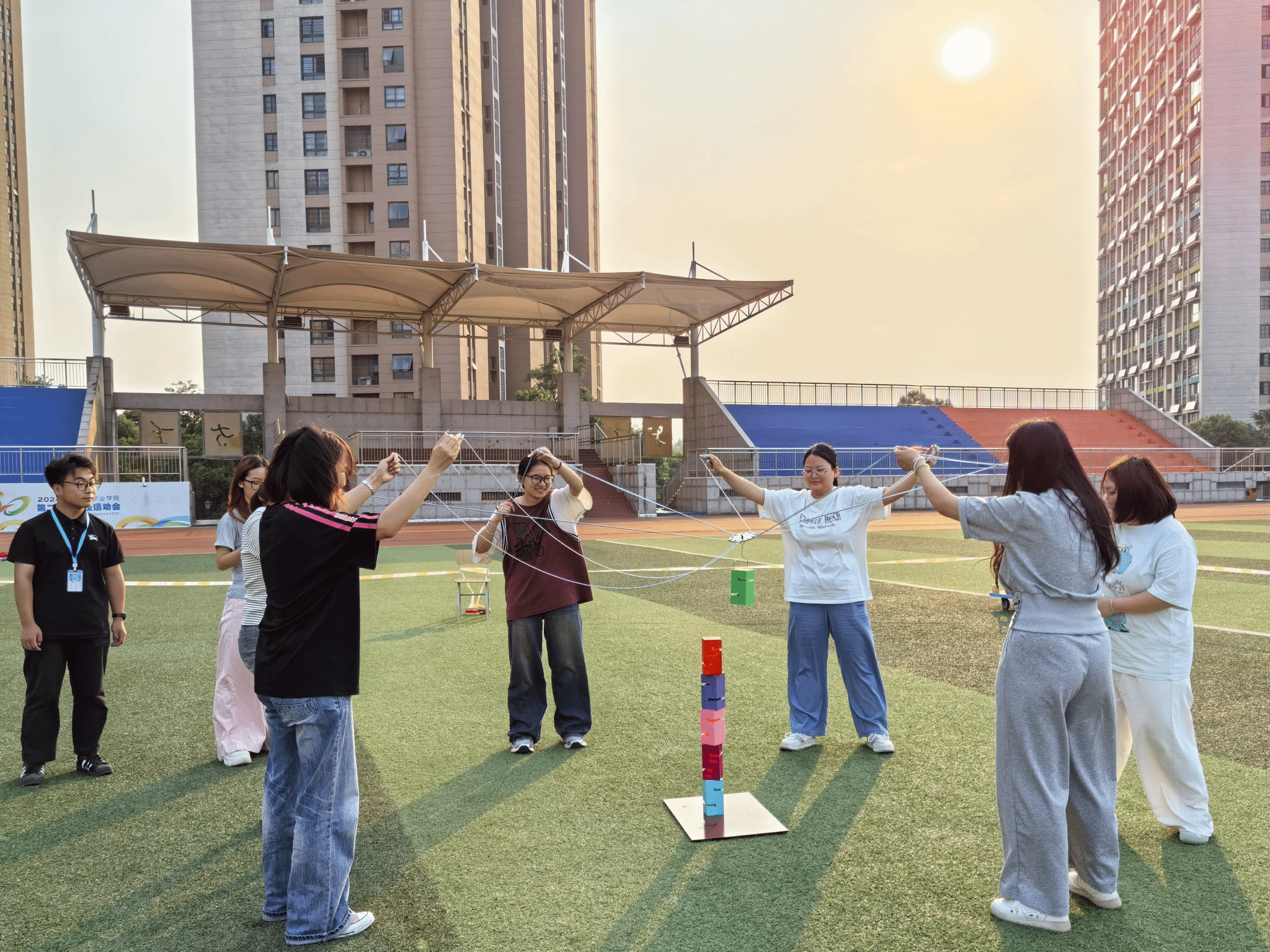 “合力建塔” 将活动推向高潮。面对搭建任务,各小组快速制定策略,成员分工明确,有人负责搬运 “砖块”,有人专注搭建。即便高塔意外倒塌,同学们也相互鼓劲、及时调整,或稳妥求胜,或挑战新高,深刻领悟团队合作的力量,收获友谊与成就感。