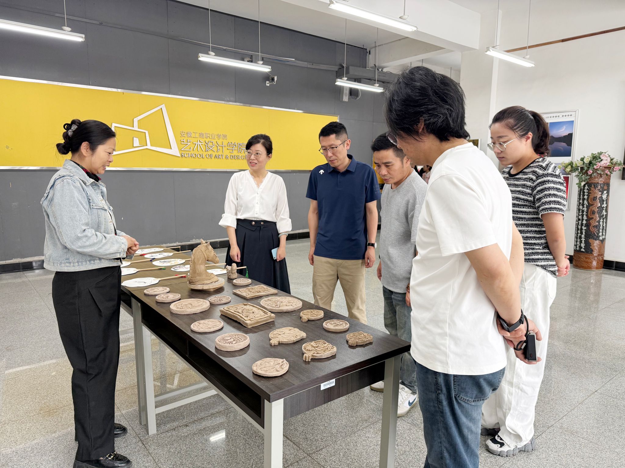 6月12日上午,产品艺术教研室梁秀丽老师所授的《徽州三雕》、《国画》课程结课作业汇报展在致知楼拉开帷幕。艺术设计学院院长魏芬、副书记张乐、副院长邱志斌、教务科长张翌等部分师生参加“开展式”。