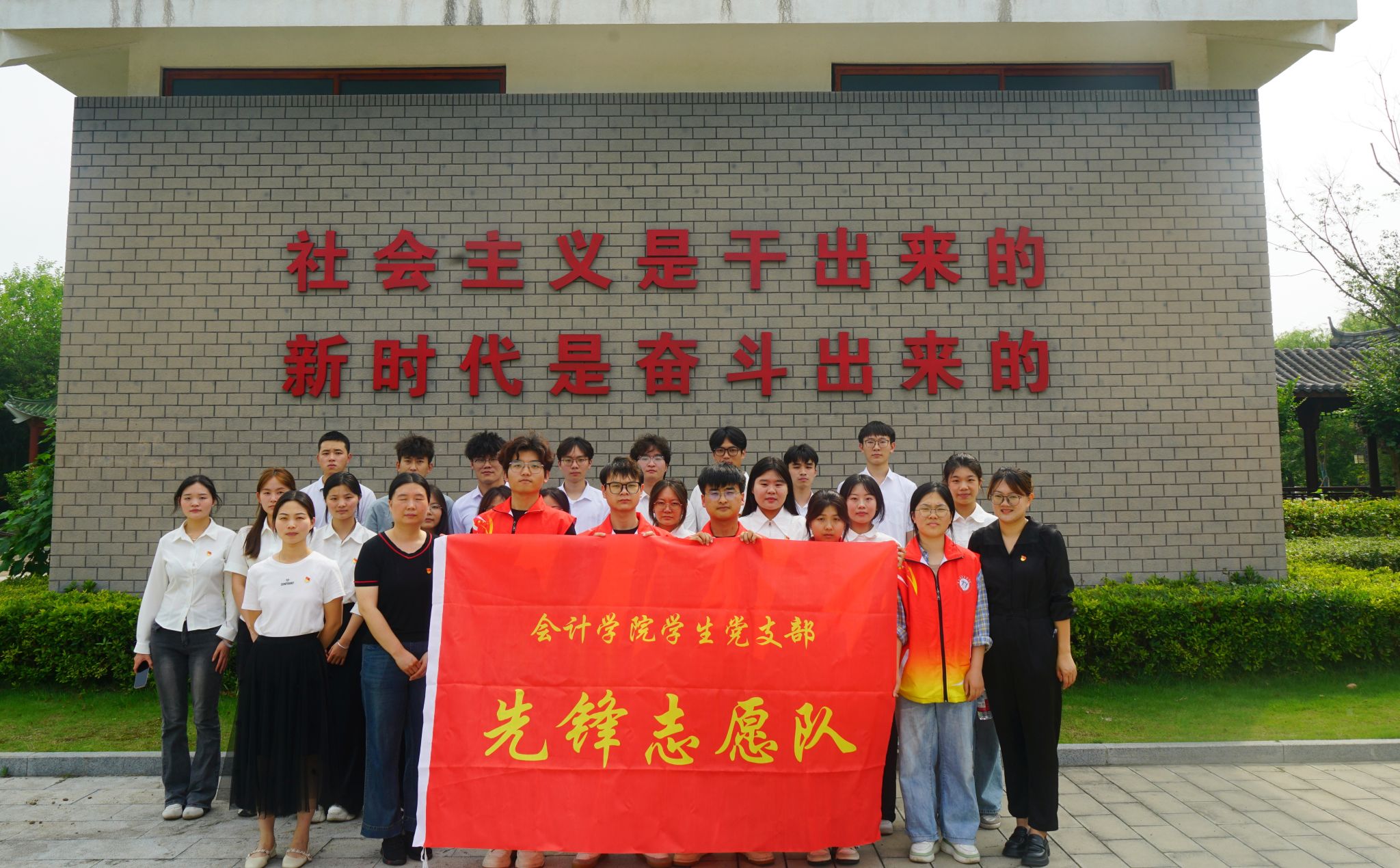 6月11日,会计学院党总支组织学生党支部先锋志愿队走进合肥党史馆,开展“拔草护绿勇担使命,先锋行动共筑新风”志愿服务活动。36名学生党员及入党积极分子以劳动为笔、汗水为墨,在党史馆周边描绘出一幅青春奉献的红色画卷,用实际行动诠释新时代青年党员的责任担当。