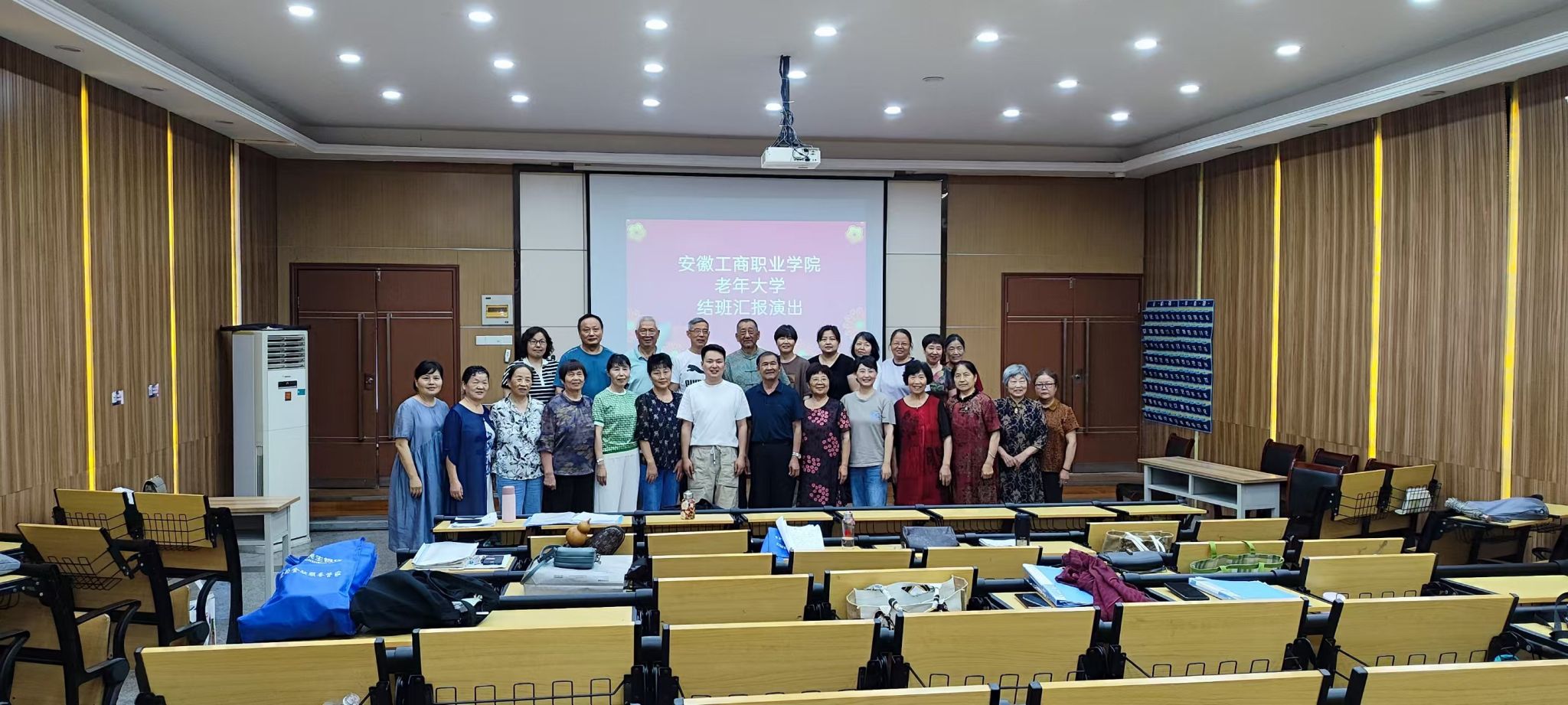 6月19日下午,安徽工商职业学院庐阳校区一楼阶梯教室歌声悠扬、掌声阵阵,世界第一大赌场,澳门金沙城中心:老年大学2025年春季合唱班结班汇报演出温情上演,国际交流与继续教育学院副院长陈清清、培训科科长汪丹丹与合唱班师生共同参加了本次活动。