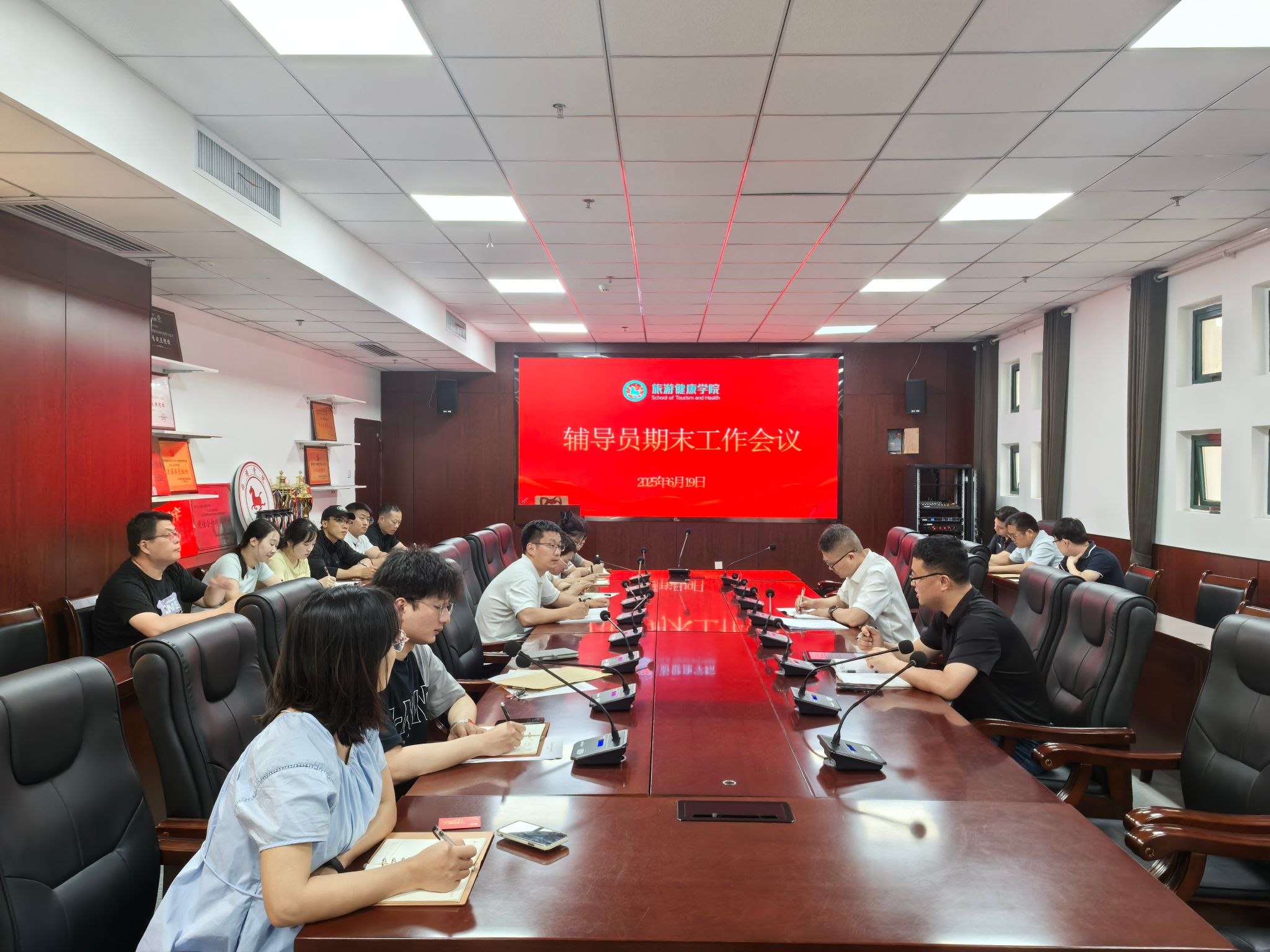 6月19日中午,旅游健康学院在学院会议室召开全体辅导员期末工作会议,专题部署期末与暑期学生管理工作。院长傅绪明、副院长王彦龙出席会议,学院党总支书记杨锐主持会议,全体辅导员参会。
