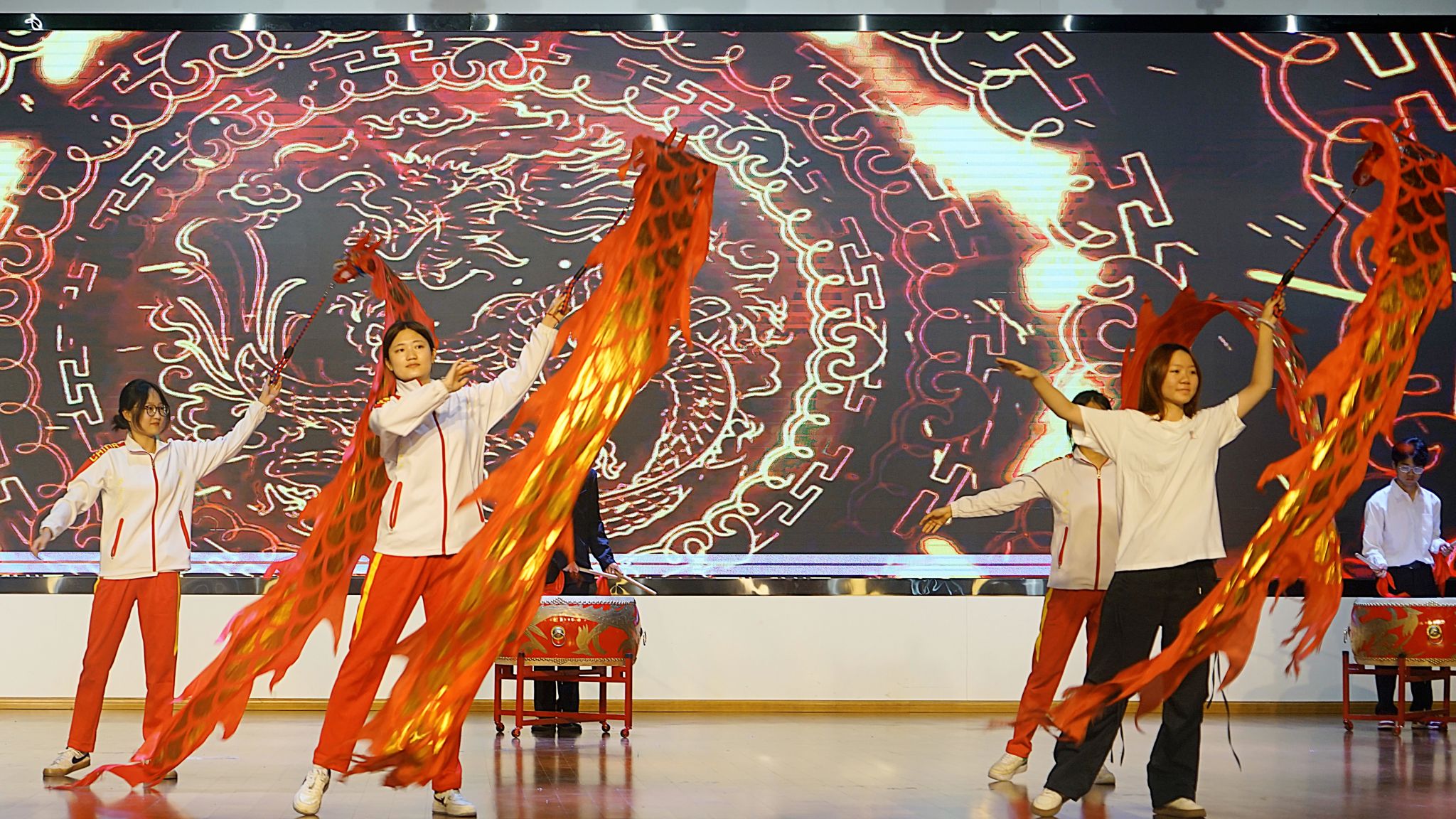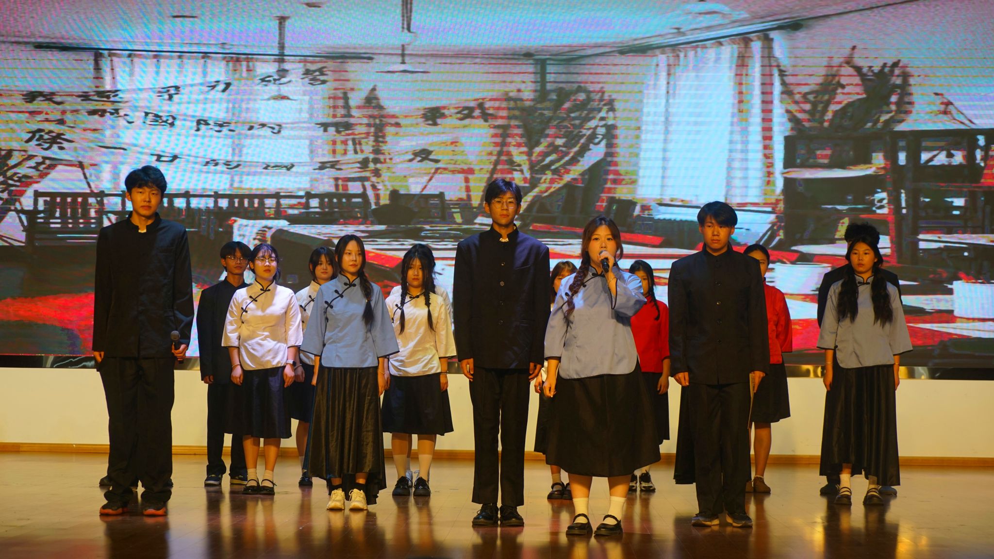“绽放?青春华章” 环节将活动推向高潮。非遗节目《鼓跃龙旋》以震撼的传统鼓乐奏响文化自信强音,展现中华优秀传统文化独特魅力;诗朗诵《复兴路上的青春告白》,朗诵者们用铿锵有力的誓言,抒发对党的无限热爱与对祖国的美好祝福;历史情景剧《觉醒年代》生动还原革命先辈奋斗历程,带领观众穿越时空,感悟先辈们的革命精神;光影影子戏《百年征程,建党伟业》以创新形式回溯党的光辉历程,创意十足、令人印象深刻。此外,舞蹈《我们都是追梦人》、合唱《明天会更好》、朗诵《读中国》等节目,也充分彰显青年学子朝气蓬勃、积极向上的精神风貌,以青春活力诠释对未来的无限憧憬。