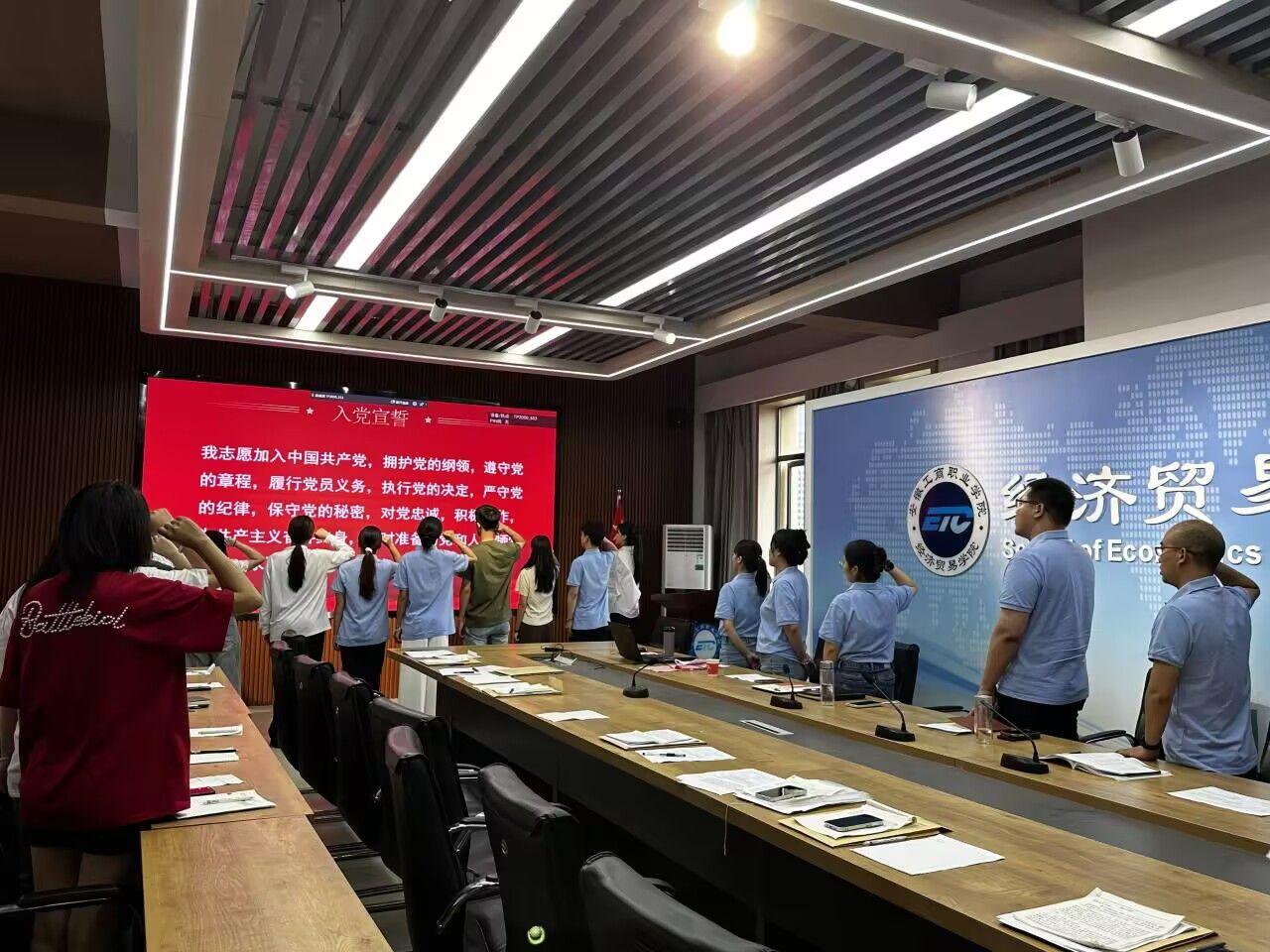 在喜迎中国共产党成立104周年之际,为深情献礼党的生日,进一步强化毕业生党员身份意识和责任担当,引导他们在学思践悟中筑牢信仰之基、在实干笃行中淬炼坚强党性。6月29日,经济贸易学院学生党支部开展“不忘初心启新程 永葆本色向未来”毕业生党员教育活动。学院党总支副书记马莉,全体毕业生党员参加活动。活动由学院党总支委员、组织员杨玉娇主持。