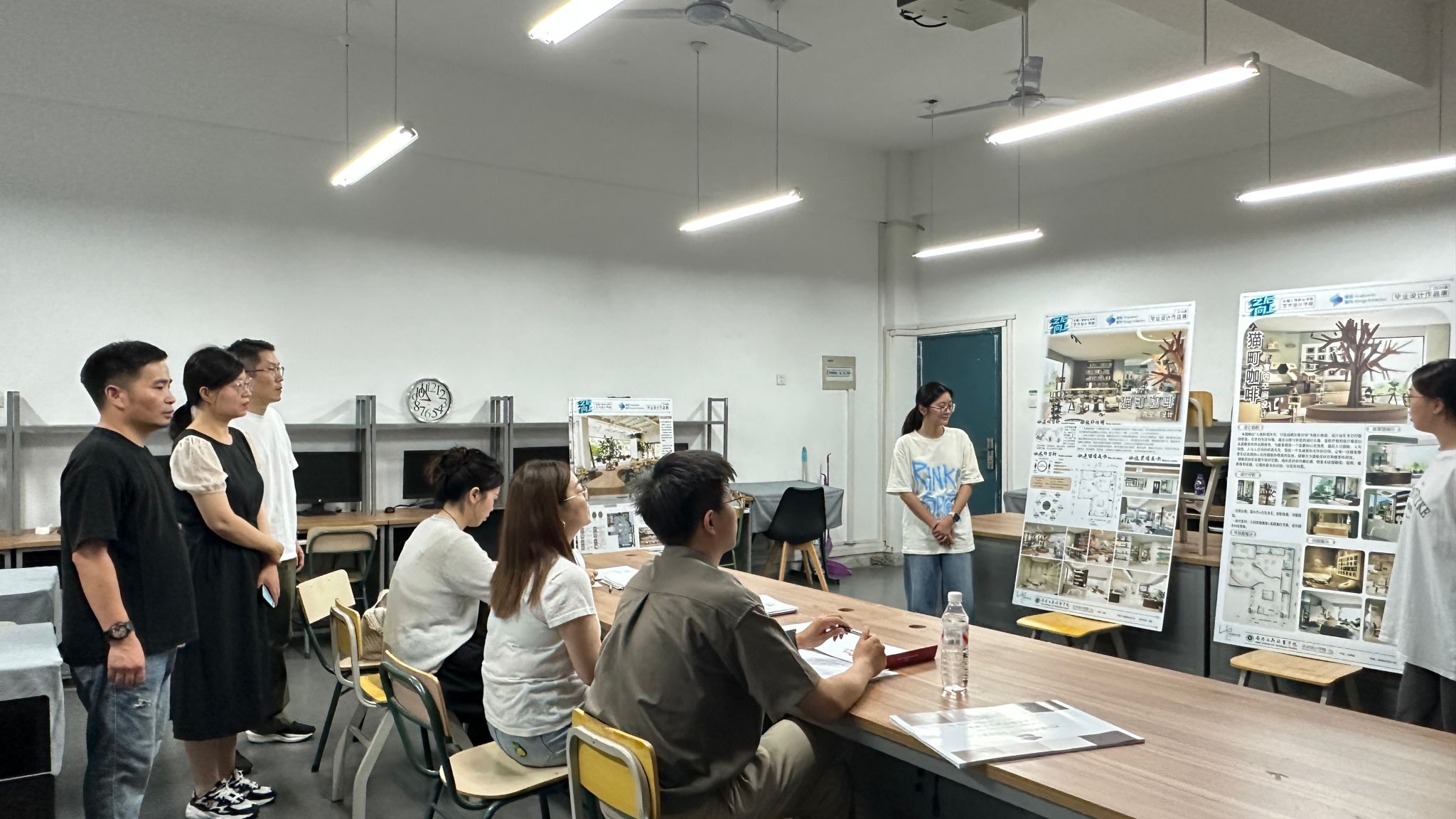 7月26日,艺术设计学院2026届毕业设计答辩工作在致知楼各工作室有序开展。本次答辩汇聚了广告艺术设计、产品艺术设计、环境艺术设计、建筑室内设计和婴幼儿托育服务与管理 5个专业的近三百名毕业生,各专业教研室教师组成答辩评审组,共同检验同学们的学习成果,见证他们从校园走向社会的重要成长时刻。