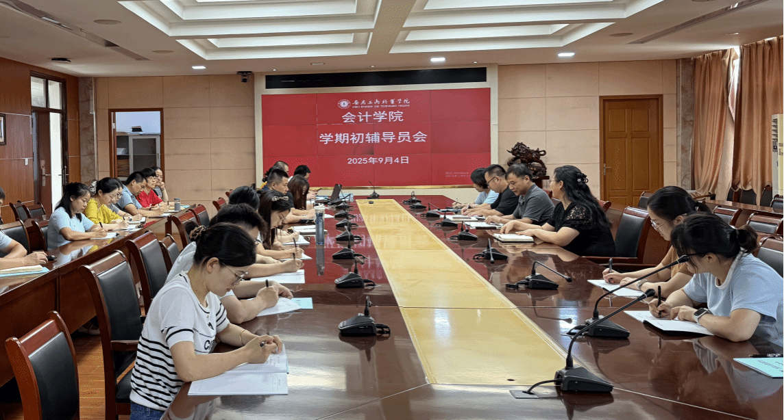 9月4日,会计学院在明德楼2号会议室召开2025年秋季学期期初辅导员全体工作会议。会计学院党总支书记赵艳、全体专兼职辅导员以及学生科工作人员参加会议。党总支副书记李峰主持会议。