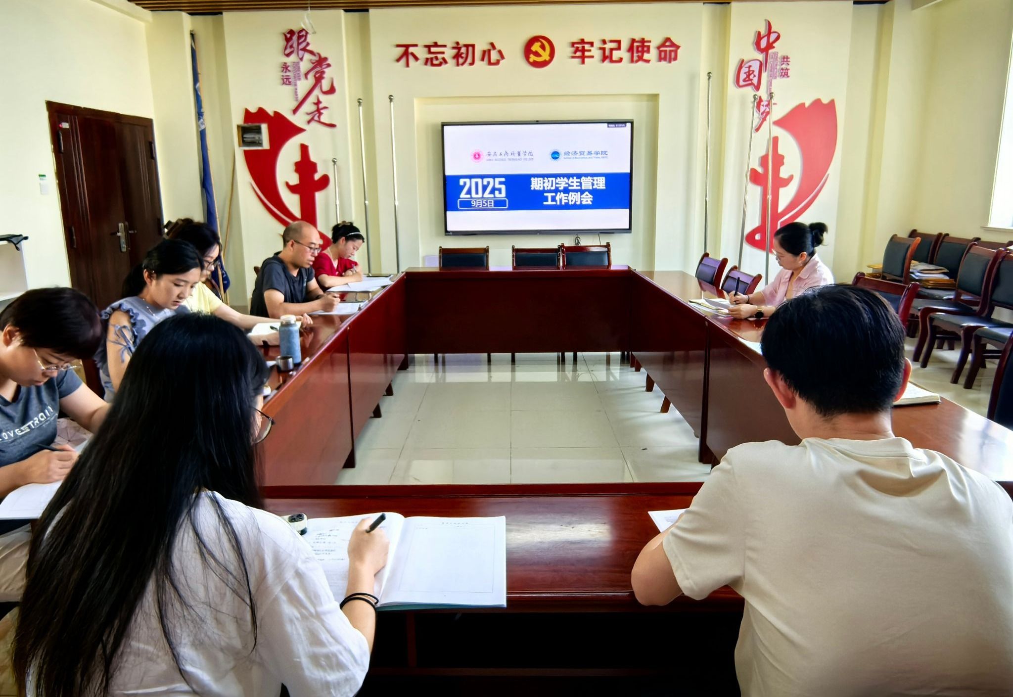 为统一思想、凝聚共识,确保新学期学生管理工作开好局、起好步,9月5日下午,经济贸易学院召开秋季学期期初学生管理工作会议,全面部署新学期重点工作。学院党总支副书记马莉主持会议,全体专兼职辅导员参会。