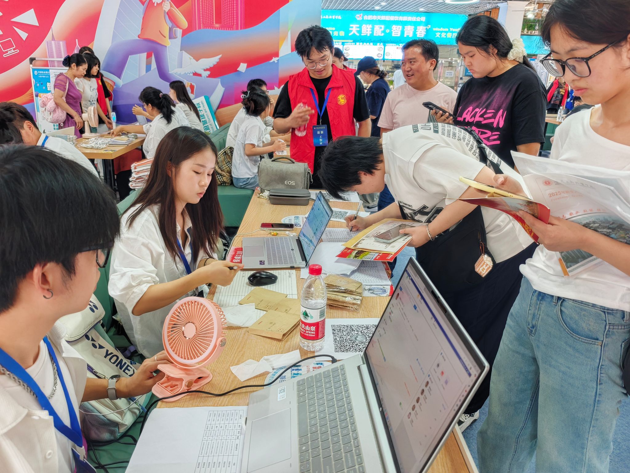 迎新现场,彩旗飘扬,各类迎新帐篷、条幅、海报、展板烘托出了温馨而又热闹的迎新氛围,各专业的新生辅导员以及迎新志愿者在自己的岗位上有条不紊地进行报到工作。志愿者们忙碌在报到现场的各个角落,他们为新生引路,帮助搬运行李,接受新生咨询,引导新生完成报到注册,带领新生整理宿舍床位,叮嘱新生注意安全,防范电信诈骗。热情周到的服务,获得了新生和家长们的一致好评。学院党政班子领导多次亲临迎新现场,了解报到情况,同新生和家长亲切交流,为他们答疑解惑。