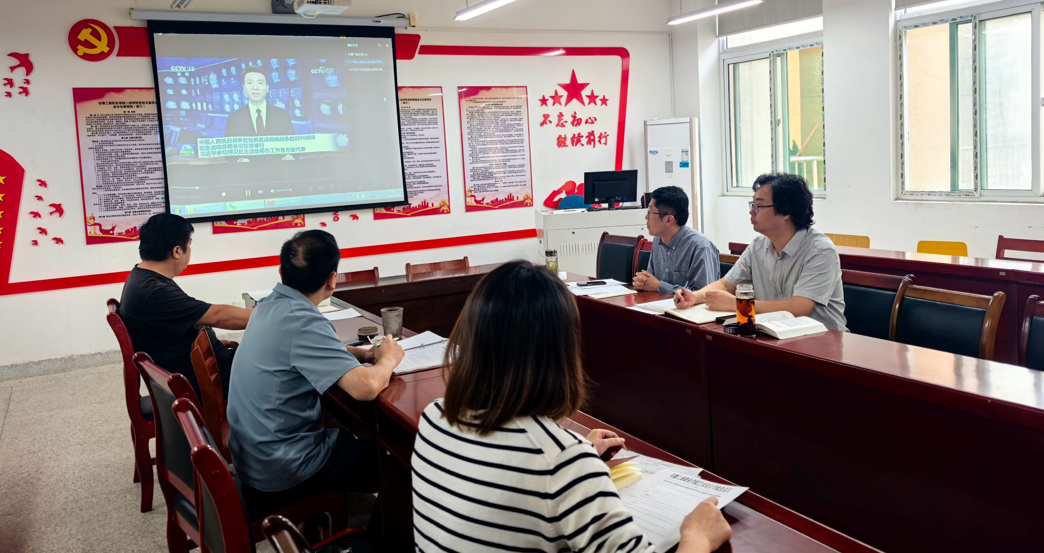 会上,与会人员视频学习了《中国人民抗日战争暨世界反法西斯战争胜利80周年纪念活动总结会议在京举行 习近平亲切接见纪念活动筹办工作各方面代表》《习近平回信勉励全国特岗教师代表》新闻报道,张乐领学了习近平同志《论党的青年工作》。