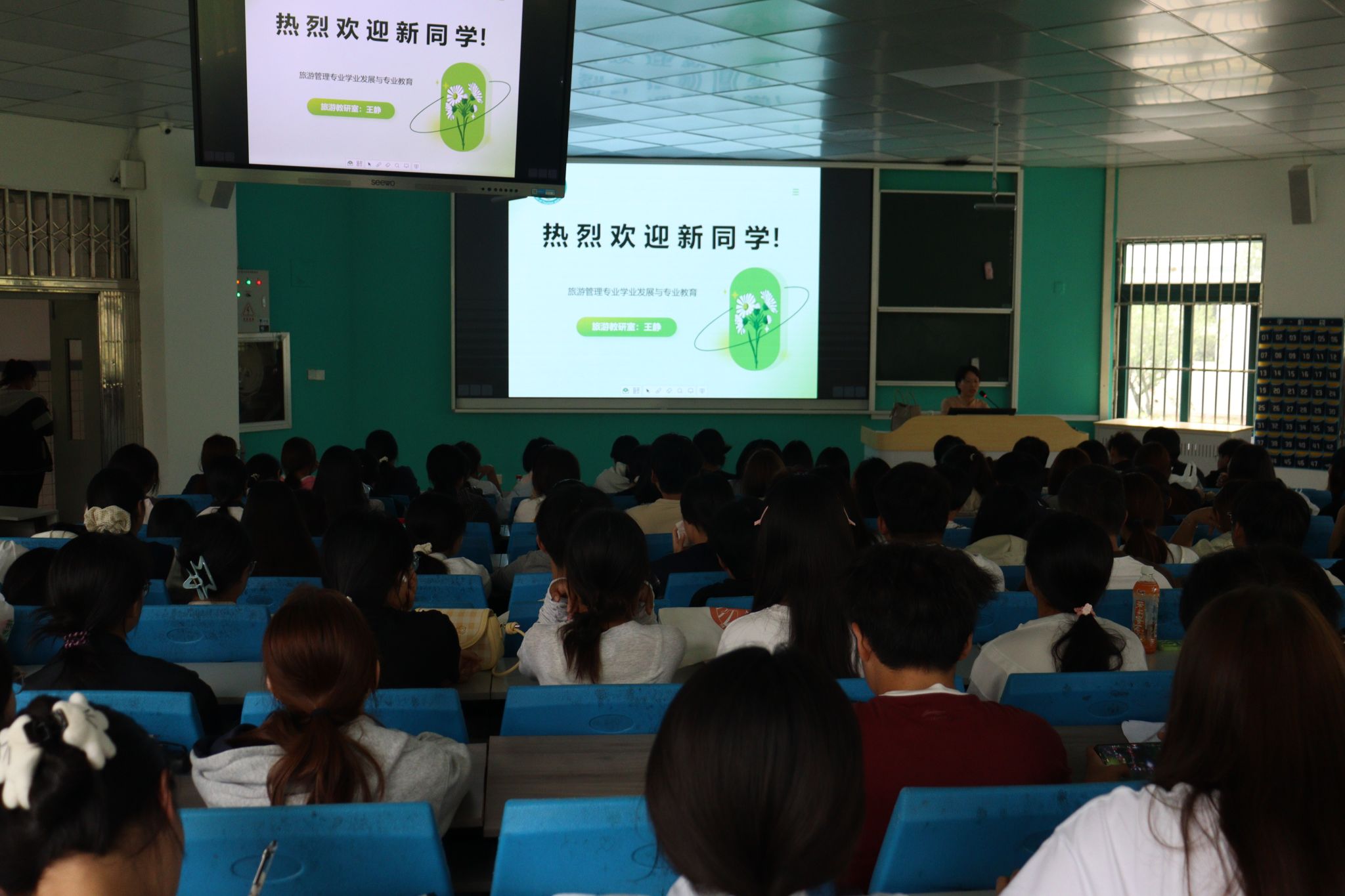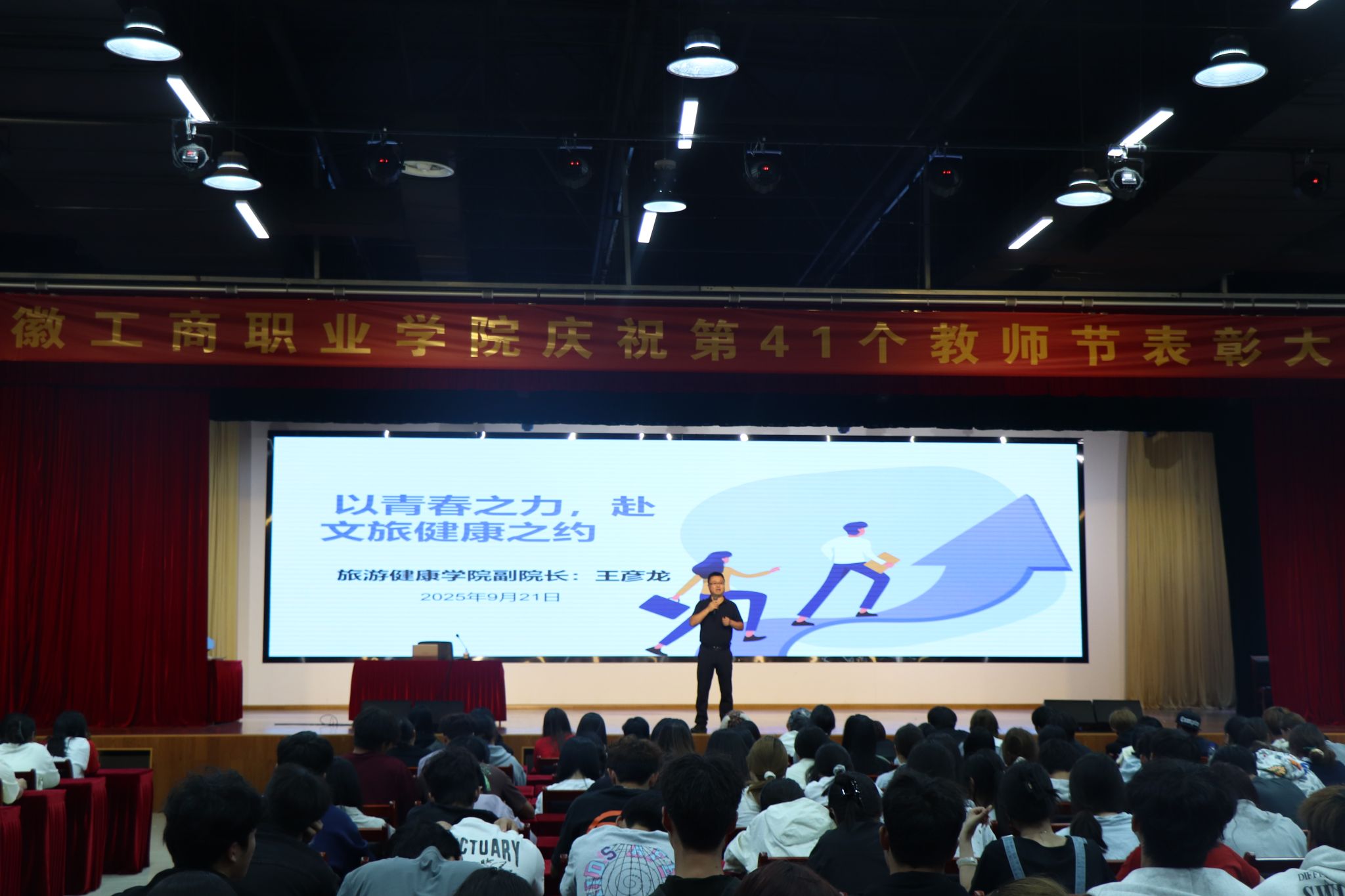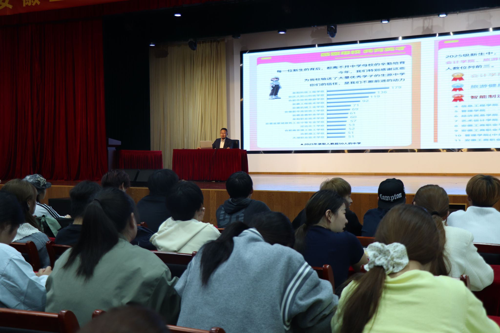 学院领导班子成员先后走上讲台,为新生带来多场主题鲜明、内涵深刻的 “开学第一课”。党总支书记杨锐以“坚定理想信念,努力成长为堪当民族复兴大任的时代新人”为题,阐述了理想信念的意义与青年使命,鼓励新生将个人理想融入国家发展,以青春之力助力民族复兴;院长傅绪明围绕“筑梦安工商 启航新未来”,系统介绍了学校与学院的发展历程、办学特色与文化荣誉,增强了新生的归属感和自豪感;副书记刘燕聚焦行为习惯养成,从学习、生活与交往三个维度引导新生“涵养良好习惯 点亮未来人生”,树立自律意识;副院长王彦龙则以“高职院校大学生学业规划”为主题,结合专业前景与高职教育特点,指导学生明确目标、合理规划,为后续学习厘清路径。整场教育从思想引领、校情认知、习惯塑造到学业规划,全方位赋能新生成长,为其大学生活奠定坚实基础。