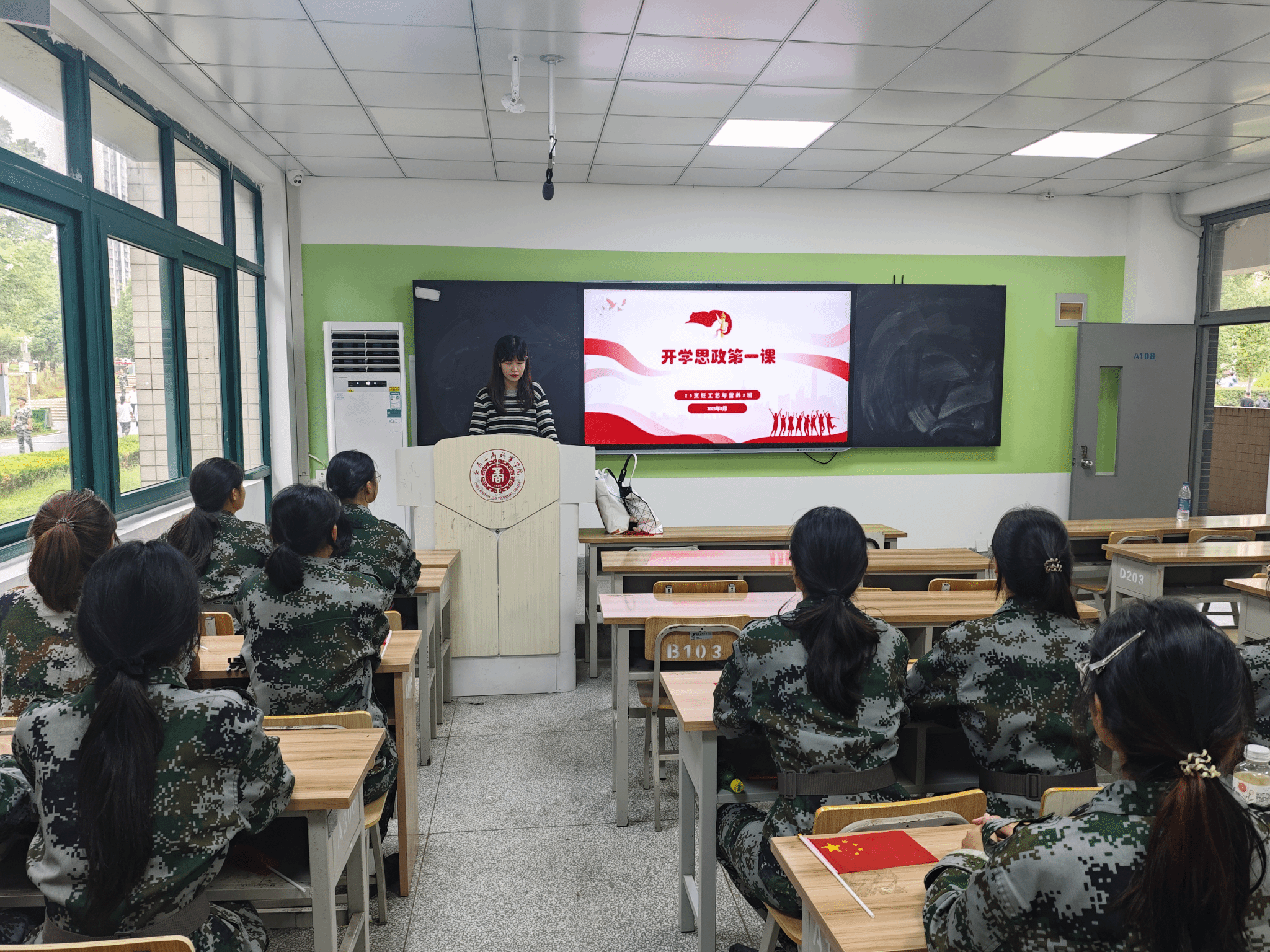 为纪念中国人民抗日战争暨世界反法西斯战争胜利 80 周年,学院举办了 2025 级新生合唱比赛。比赛现场,各新生班级以饱满的热情、嘹亮的歌声演唱了《黄河大合唱》《歌唱祖国》《没有共产党就没有新中国》等经典红色歌曲。同学们身着统一服装,精神抖擞,用歌声重温历史、缅怀先烈,展现出新时代青年对革命先辈的崇敬之情与强烈的爱国情怀。此次比赛不仅丰富了入学教育形式,更让新生在红色旋律中接受了深刻的爱国主义教育,进一步坚定了 “强国有我” 的信念。