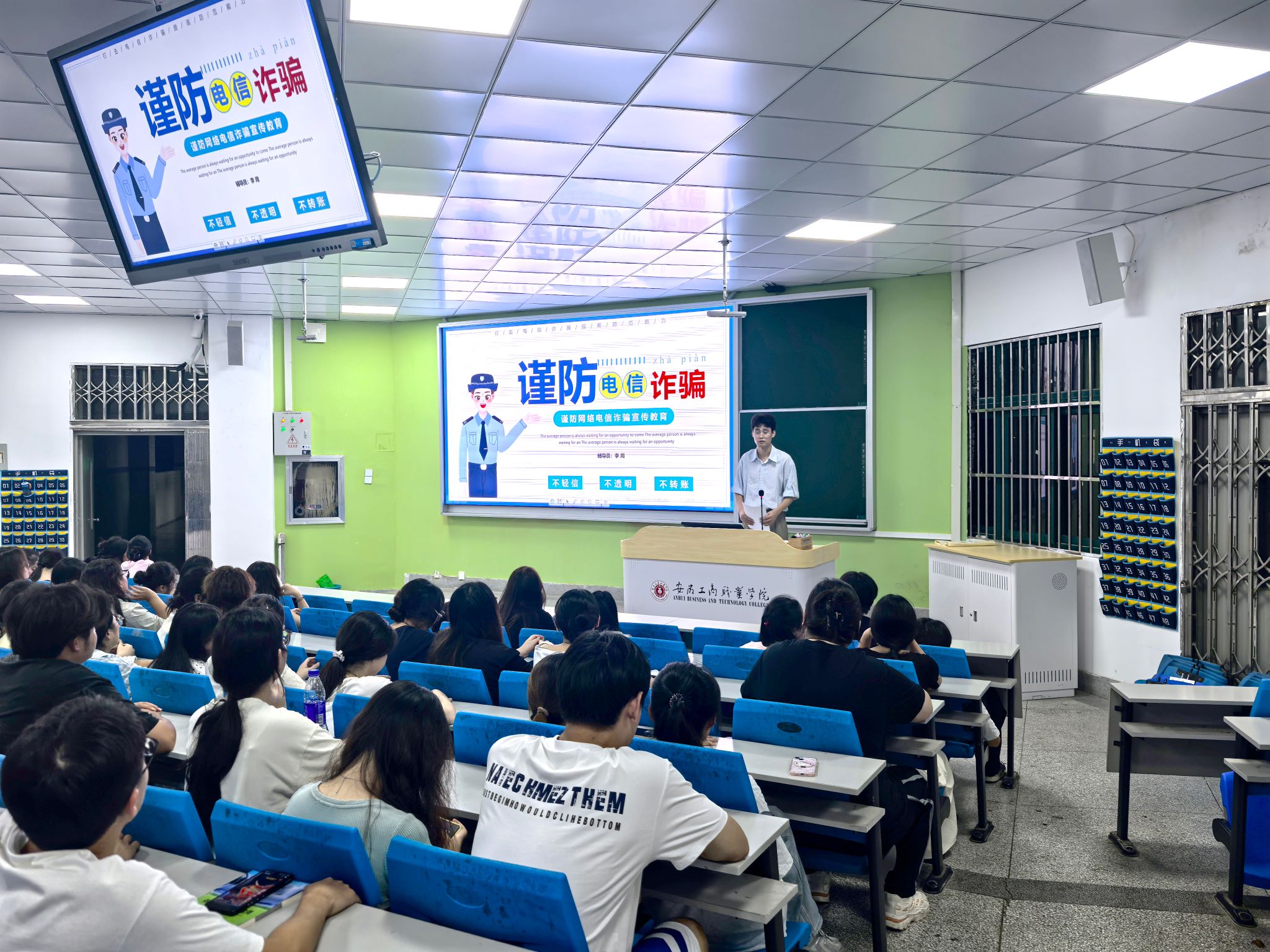 学院以班级为单位,组织开展系列主题班会,围绕理想信念教育、安全教育、防诈骗教育等核心内容展开。班会上,辅导员结合案例,向新生讲解了国家安全、校园消防安全、交通安全等知识,提醒新生增强安全防范意识;通过分享真实诈骗案例,普及电信诈骗、网络诈骗的常见手段与防范方法,引导新生树立 “不轻信、不透露、不转账” 的防骗意识;同时,辅导员还组织新生围绕 “我的大学理想” 展开讨论,鼓励新生分享个人目标,在交流中进一步坚定理想信念,明确成长方向。系列主题班会让新生在近距离交流中获取实用知识,为大学生活筑牢安全防线与思想根基。