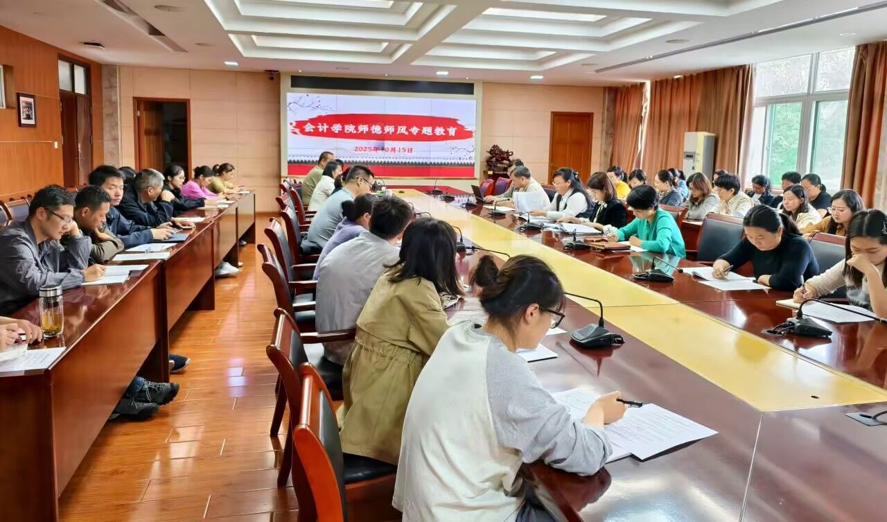 2025年10月15日,会计学院在明德楼二楼二号会议室召开10月教职工政治理论学习会议暨师德师风专题教育活动,会议由学院党总支书记赵艳主持,全体教职工参加。