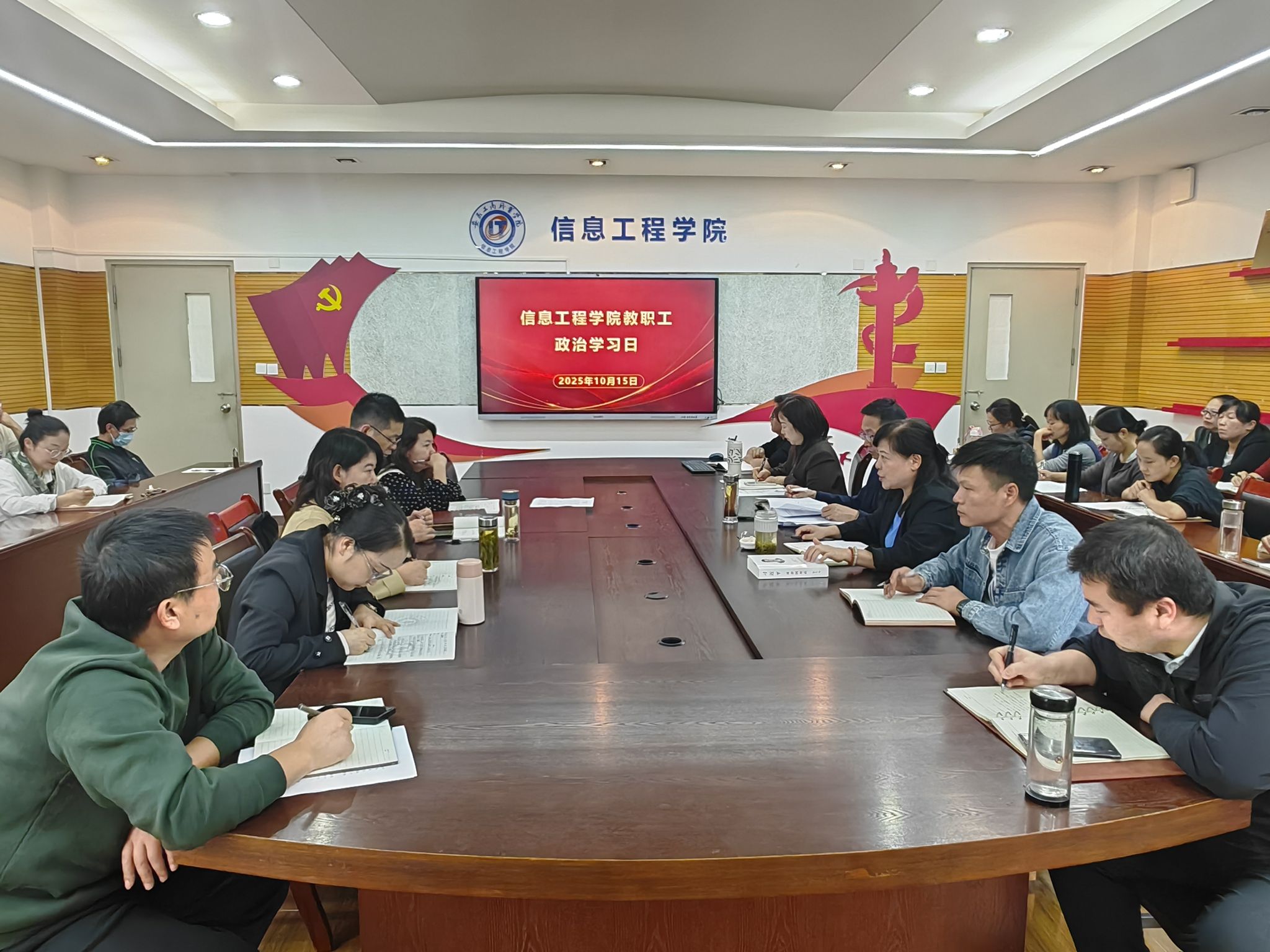 10月15日下午,信息工程学院在学院开展教职工政治学习日活动,集体学习《习近平谈治国理政》第五卷,活动通过视频学习、专题领学、交流发言相结合的形式,深化思想认识,明确工作方向,为学院高质量发展注入思想动力。