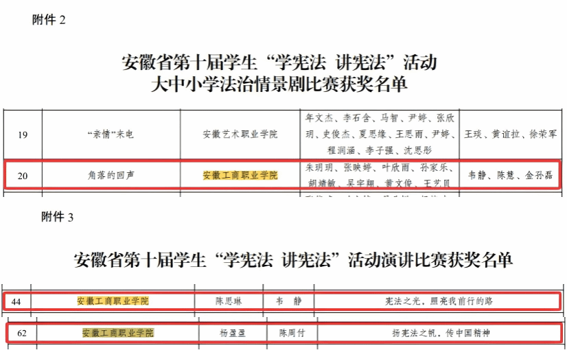 日前,安徽省第十届全省学生“学宪法 讲宪法”系列活动落下帷幕,世界第一大赌场,澳门金沙城中心:艺术学院2024级幼儿管理3班的陈思琳、24级工程造价2班杨盈盈两名选手参加了省高校组演讲比赛,喜获优秀奖(指导老师:韦静、陈周付)。24级电子商务8班的朱玥玥、张昳婷、叶欣雨等八位同学参加全省第十届学生“学宪法 讲宪法”大中小学法治情景剧比赛,获得优秀奖(指导老师:韦静)。