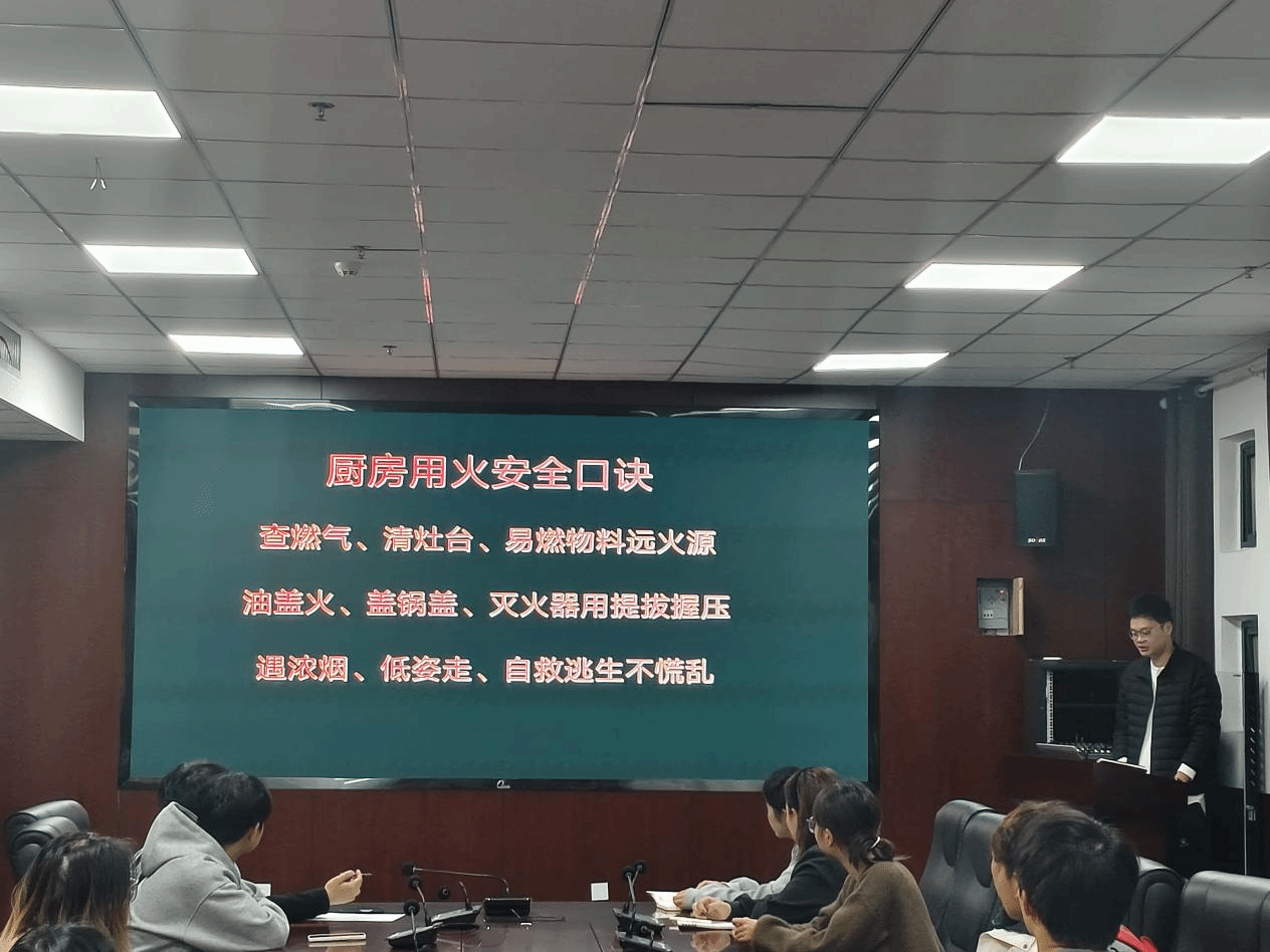 为将安全理念内化于心、外化于行,学院召开烹饪实训室安全培训活动。培训由蒋一璟主讲,系统梳理了实训室常见风险点。内容涵盖设备安全操作规范(燃气、电气、机械设备)、消防安全知识与应急逃生技能、食品安全与卫生管理制度、个人防护用品正确使用以及安全行为与责任意识培养等核心模块。培训还重点重申了《实训间仓库管理条例》与“每日分料”流程,强化了学生的规范意识。培训结合真实案例与实操场景,内容生动具体,有效提升了学生对安全风险的识别与应对能力。
