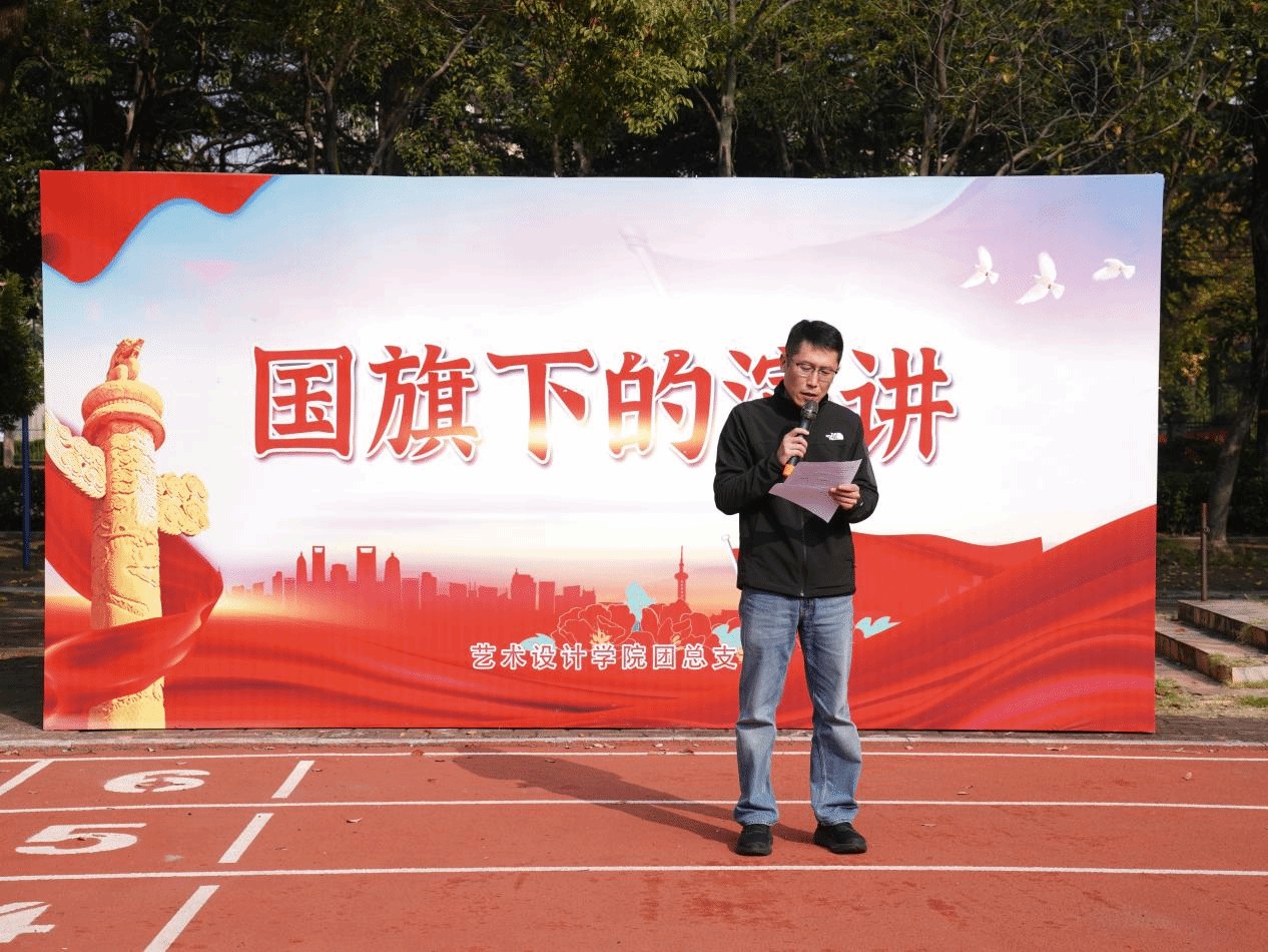 为持续强化学风建设、提升学生专业素养、夯实就业基础,努力培养德才兼备的社会主义建设者和接班人,11月14日上午,全院师生900余人在学校操场隆重举行第十二期“国旗下的演讲”爱国主义教育活动。活动由艺术设计学院团总支书记赵文卿主持。