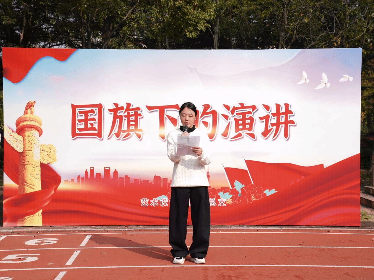 晨光熹微,五星红旗冉冉升起,全体师生肃立行注目礼,升旗仪式庄重肃穆。25广告艺术设计三班程琳同学作题为《以匠心致初心,以设计筑未来——争做德才兼备的艺术设计生力军》的主题演讲。她倡议全体同学以强化学风建设为舟,以提升专业水平为桨,以奠定就业基础为帆,锤炼品德修为,精进专业能力,努力成长为有理想、敢担当、有本领的时代新人。用充满创造力与责任感的设计,去描绘个人成长的精彩画卷,去谱写民族复兴的壮丽篇章!