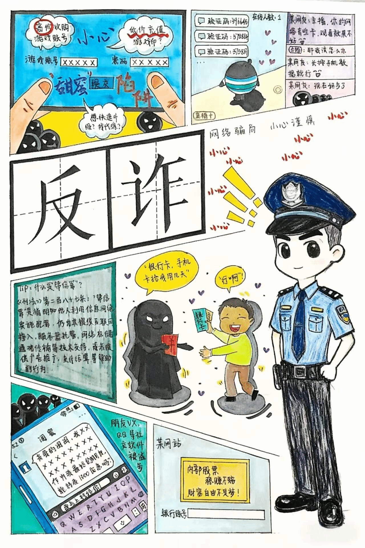 10月15日至25日,学院面向2024级、2025级新生正式启动“反诈青春行,创意护平安”原创海报征集比赛。活动筹备阶段,学院学生会权益部组建宣讲小组,深入新生班级开展反诈专题宣讲,结合校园真实案例,系统解读“校园贷”“刷单返利”“冒充客服退款”等高发诈骗陷阱的作案手法与防范要点,为活动开展奠定良好基础。本次征集要求参赛作品以A4尺寸数字绘画为呈现形式,需巧妙融入96110反诈专线、国家反诈中心APP等核心知识点,鼓励采用漫画、谐音梗、可视化图标等青春化表达形式传递防诈理念。评审阶段,学院组织专业教师与学生代表组成评审团,从主题契合度、创意创新性、视觉美观性、知识点准确性等多维度进行综合评审,最终评选出一等奖一名,二等奖两名,三等奖若干,其中25计算机网络技术7班李继红同学以优异的作品获得一等奖。