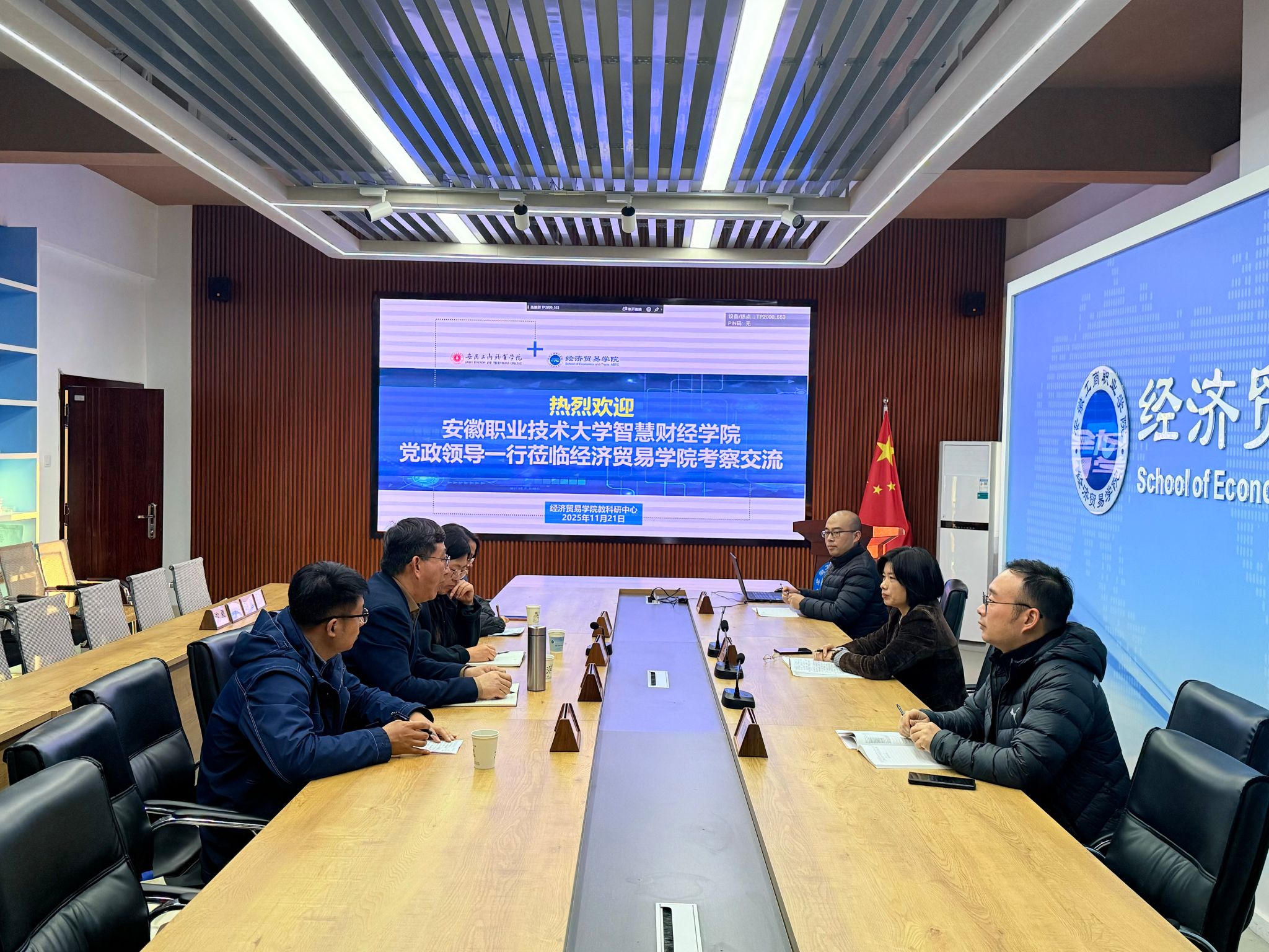 汪洪斌院长对经济贸易学院的热情接待表示衷心的感谢,对经济贸易学院的建设经验、已取得的丰硕成果及独具特色的经贸文化给予了高度评价。并就安徽职业技术大学的基本情况、智慧财经学院的建设与发展情况作了经验分享与交流。