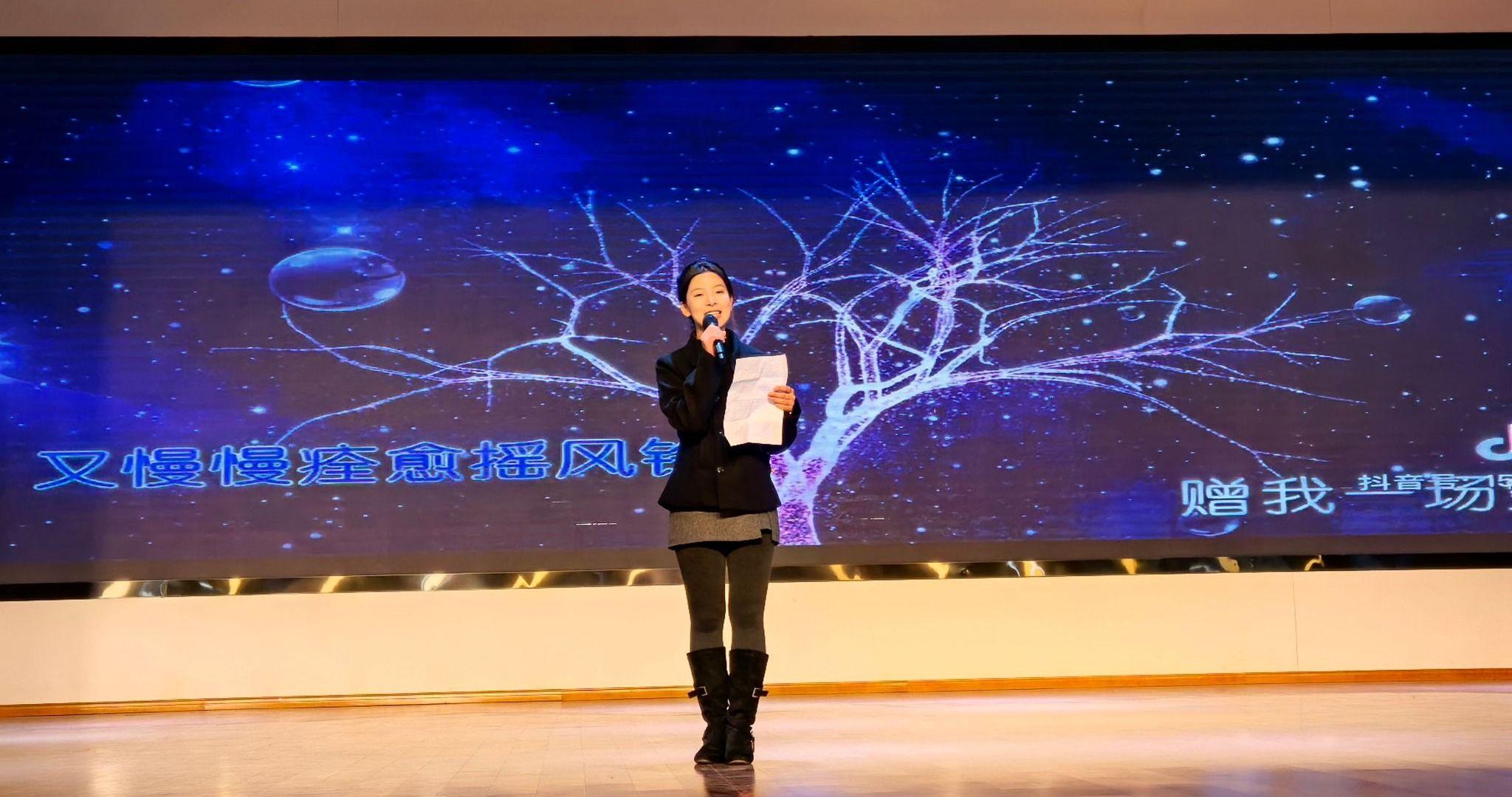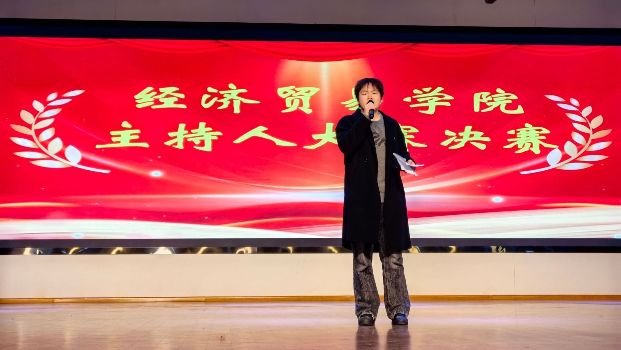 12月3日,经济贸易学院新生主持人大赛在大学生活动中心圆满落幕。本次比赛以“声动青春,语绎风华”为主题,通过“自我介绍”“才艺展示”“模拟主持”三大环节,全面展示了新生的艺术才华与专业素养,生动诠释了智育与美育的有机结合。