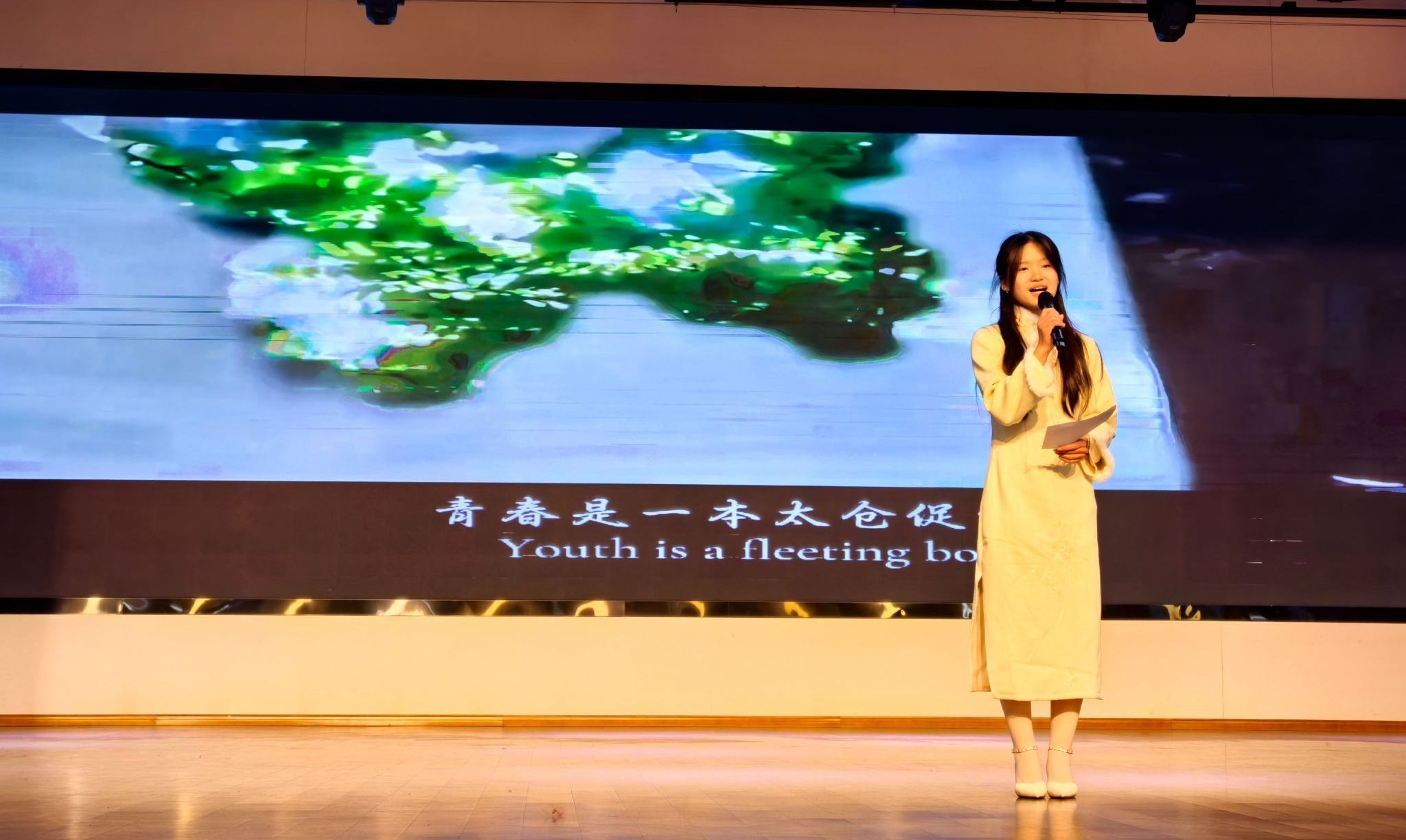 比赛现场气氛热烈,亮点频现。在“自我介绍”环节,选手们将个人成长融入时代经纬,以真挚话语抒发家国情怀,充分彰显新时代青年“强国有我”的使命担当;“才艺展示”环节精彩纷呈,歌声悠扬,朗诵激昂,选手们凭借出色的艺术表现力和情感张力,生动展现当代青年感知美、表现美、创造美的能力,深刻诠释美育在激发情感、陶冶情操中的独特价值;最具挑战性的“模拟主持”环节,聚焦智育的深度与实践,选手们随机抽取新闻播报、文艺晚会、体育赛事等多元化模拟场景,灵活运用专业知识,进行精准阐释与流畅表达,集中凸显扎实的专业基础、良好的临场应变能力以及理论知识向实践技能的有效转化。