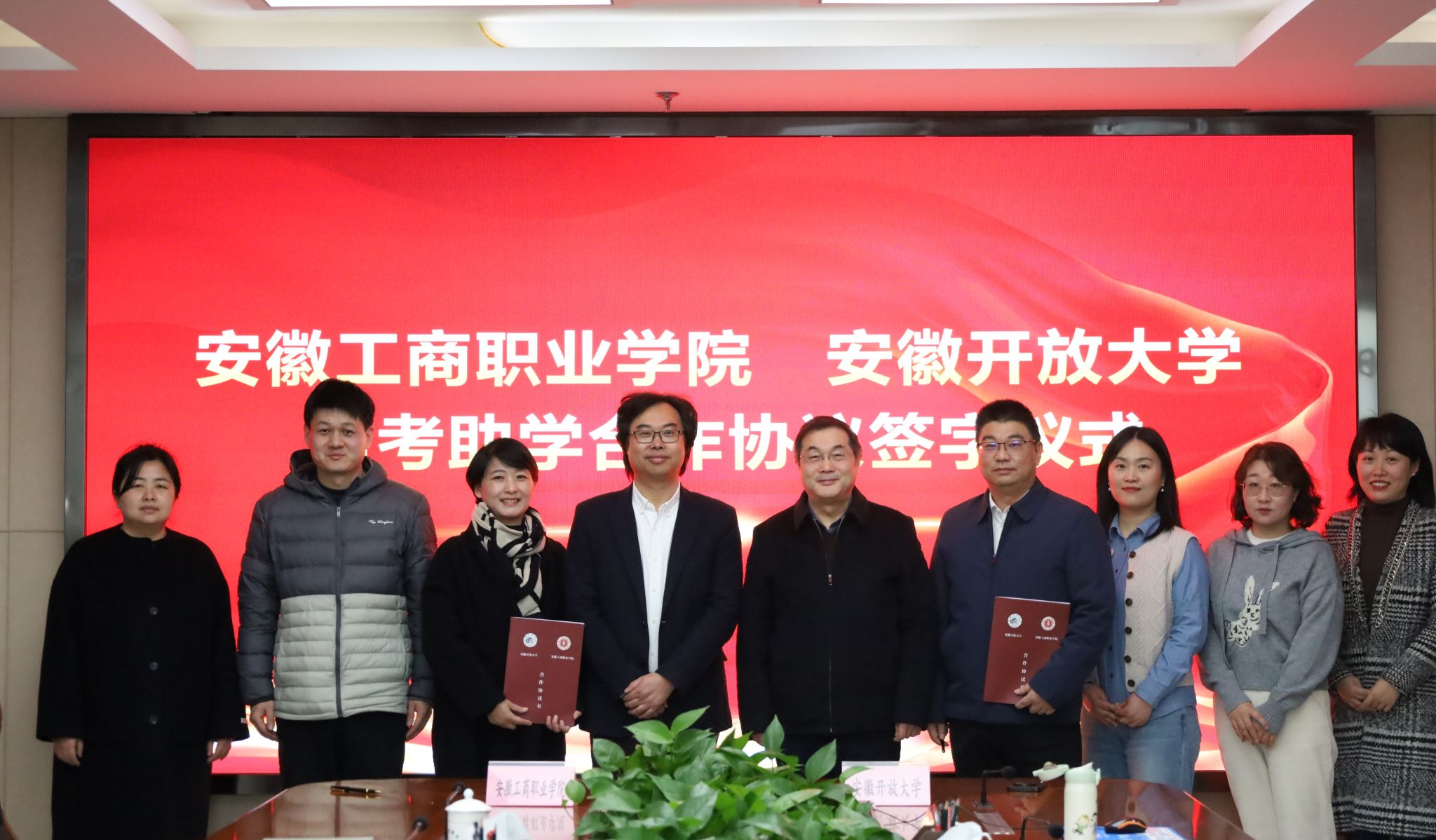 在双方代表的见证下,安徽工商职业学院与安徽开放大学正式签署了自考助学合作协议。协议内容涵盖了合作办学项目、工作机制、教学管理、学生服务等多个方面,未来将通过资源共享、优势互补等方式,为学生提供更加便捷高效的自考助学服务。