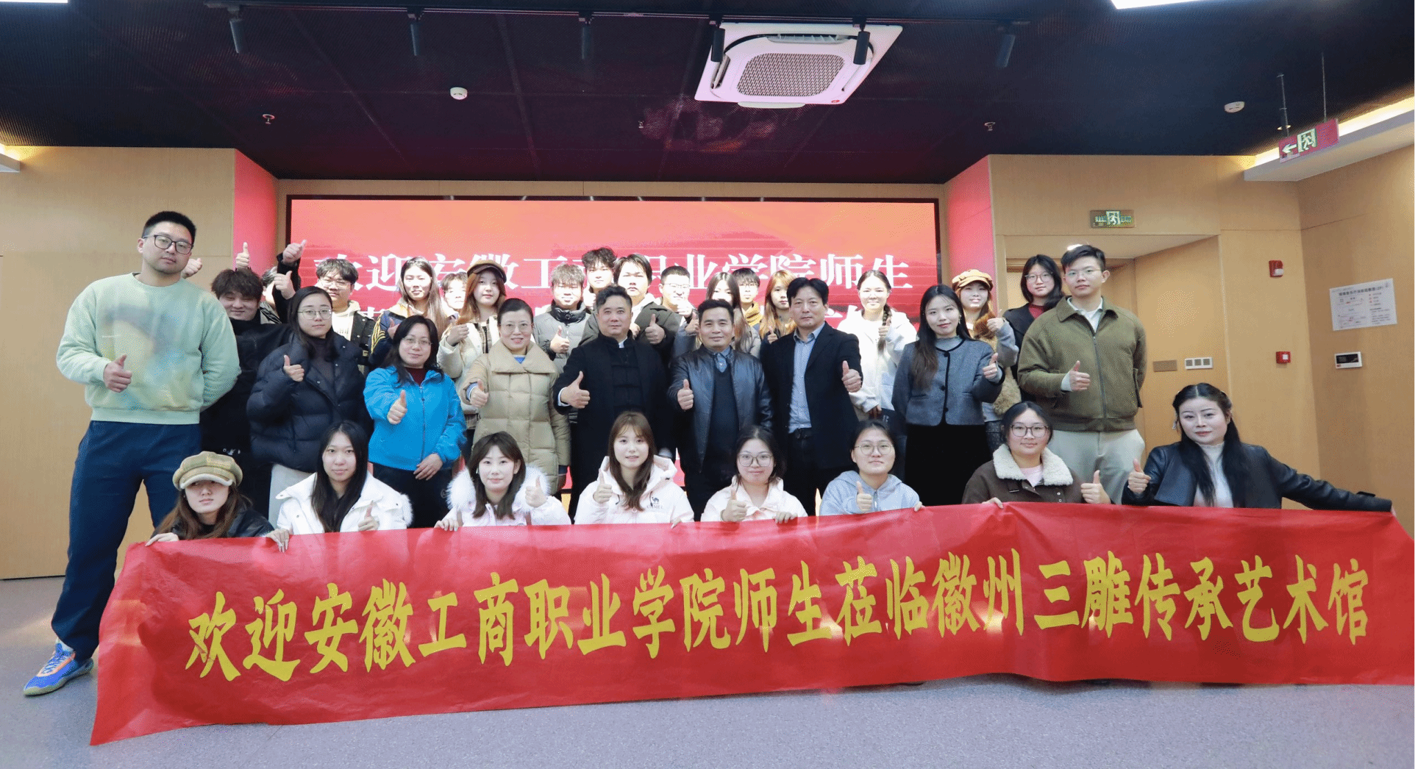 2025年12月18日下午,安徽工商职业学院第六十九期“意匠讲堂”在合肥·青年创意田园徽州三雕艺术馆拉开帷幕。本期特邀学院徽派三雕技艺大师工作室首席、徽州三雕传承艺术馆馆长、中国雕刻工艺大师、江淮名匠、徽雕第二十七代传人查嵘先生担任主讲。艺术设计学院院长魏芬、副院长邱志斌、教务科长张翌、部分教师及2024级各班的学生代表共同参加了本次讲座。